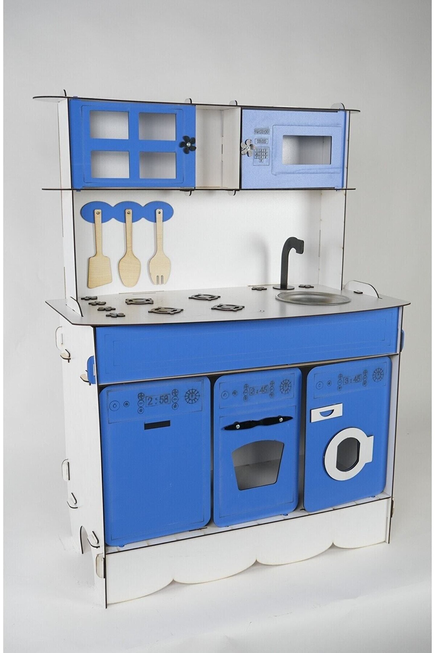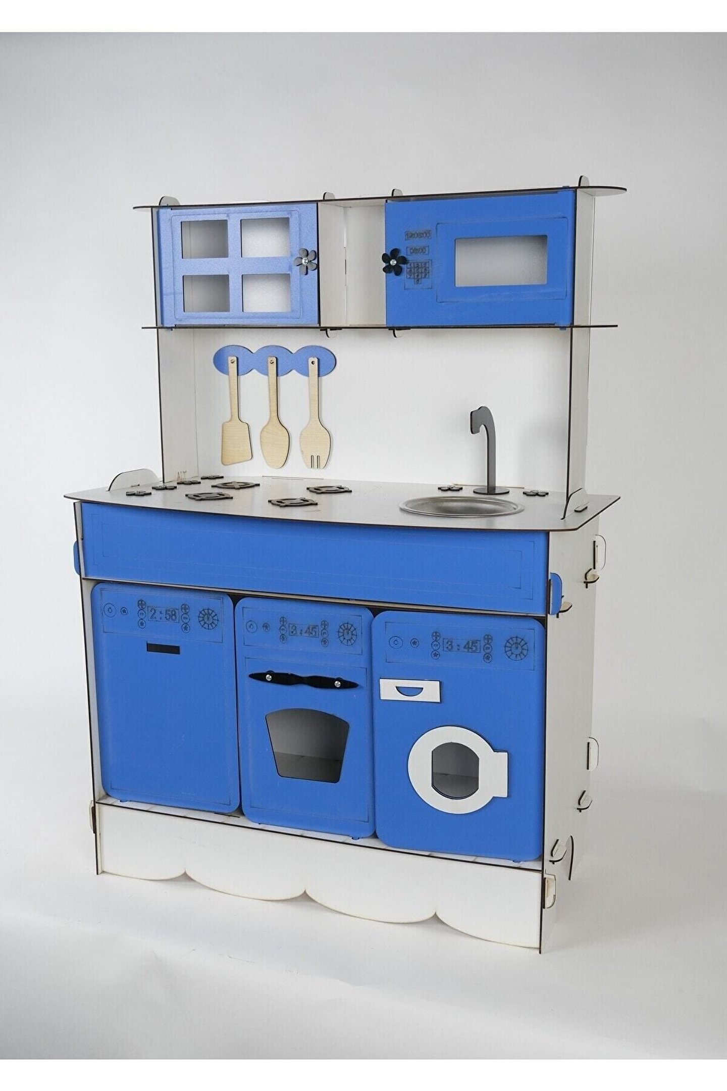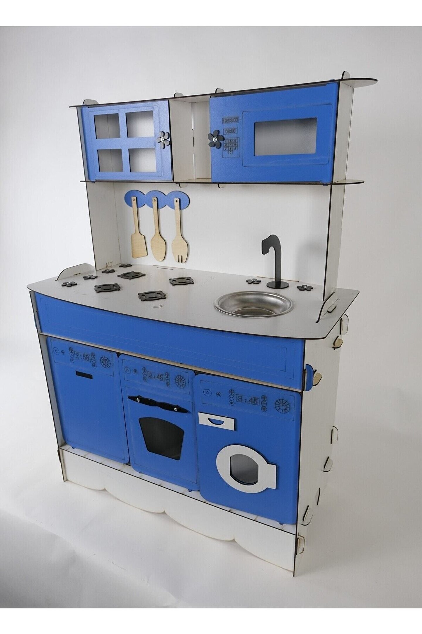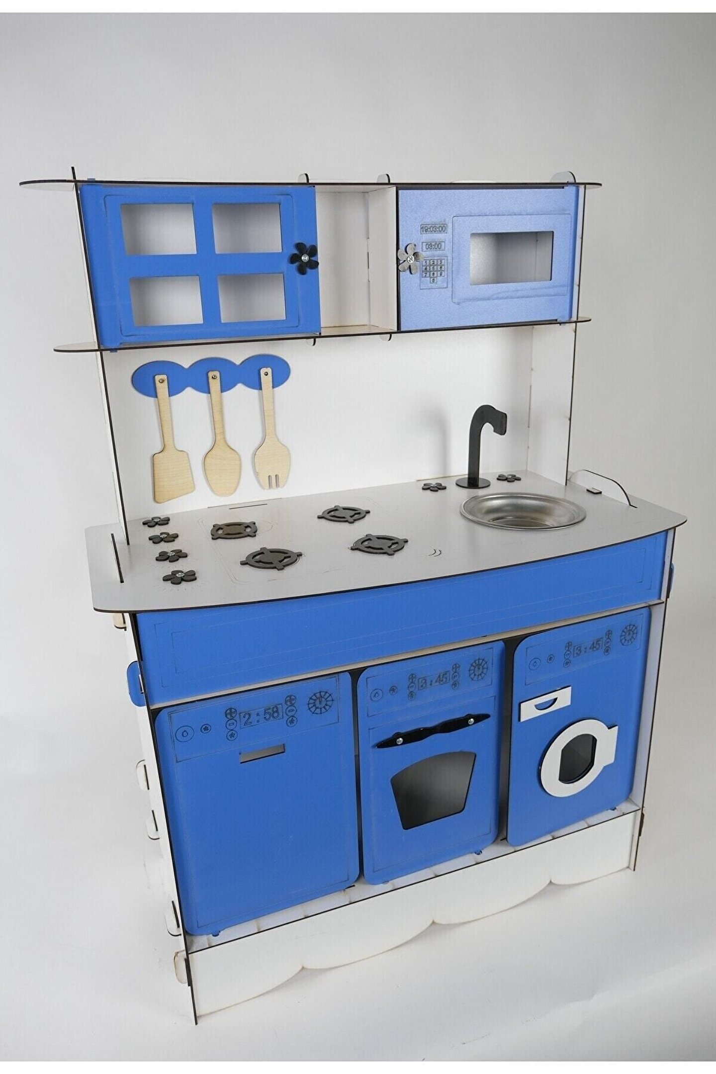 Ürün kendi imalatımız olup 3 mm 1. sınıf MDF 'den üretilmiştir. ; Tek yüz MDF değildir, ÇİFT YÜZ MDF'dir, yani her iki yüzeyi de boyalıdır. ; Genişlik 70cm, Yükseklik 100cm'dir. ; Doğum günü hediyesi olarak tercih edilen ürünler arasındadır. Evcilik oyuncakları , oyuncak mutfak setleri, eğitici oyuncaklar , kız çocuk oyuncakları alanında tercih edildiği gibi erkek çocuklar içinde oldukça talep gören bir oyuncaktır. ; Montessori etkinlikleri ne uygun olarak tasarlanmıştır, çocukların hayal gücünü ve motor becerilerini geliştirir. ; Bu ürün 3mm'dir. 6mm ürün için "Ahşap Oyuncak Mutfak 6mm" olarak inceleyebilirsiniz. Her iki üründe aynı ölçü ve özelliklerdedir sadece kalınlık farklıdır çok inceymiş açıklaması ile iade kabul edilmemektedir, 3 mm olarak binlerce kişi memnun kullanmaktadır. ; Paket içerisinde kullanım kılavuzu vardır yine de kurulum esnasında sorularınız olursa kılavuzun arkasındaki numaradan ulaşabilirsiniz. ; Kargoda hasar görmemesi için özenle paketlenmektedir, olası bir hasar durumunda parçalar ücretsiz olarak kargo edilir. ; Boyalı olduğundan boya için ayrıca uğraş gerektirmez sadece kurulum yaparak kullanıma başlayabilirsiniz. ; Farklı renklerde üretimi yapılmaktadır.;