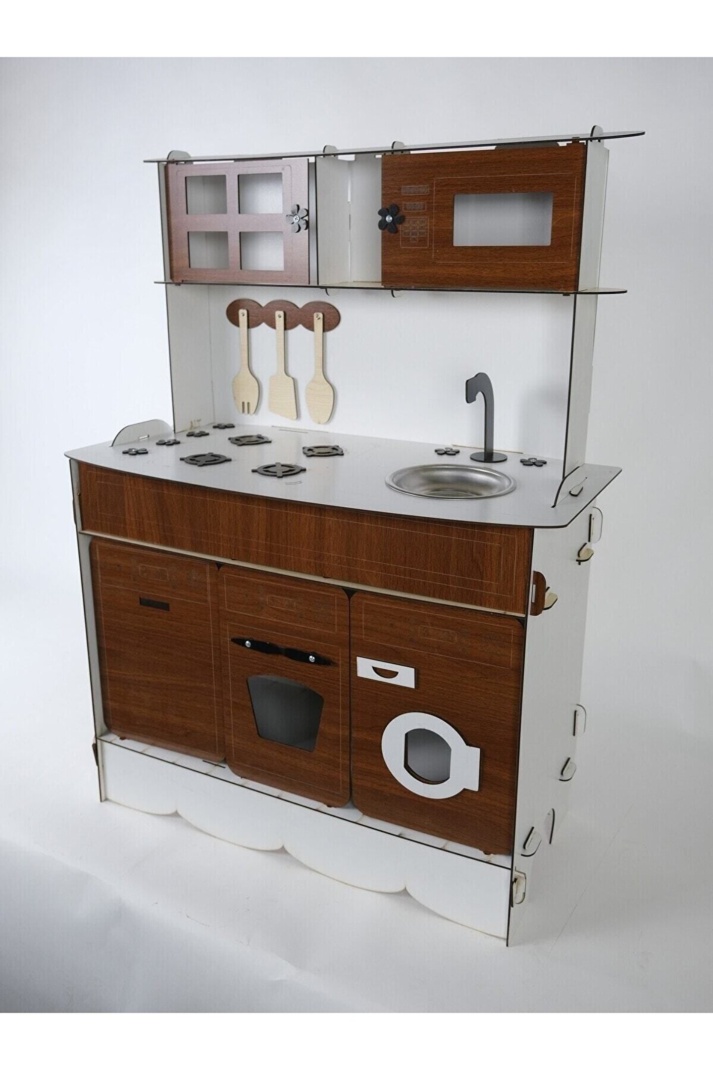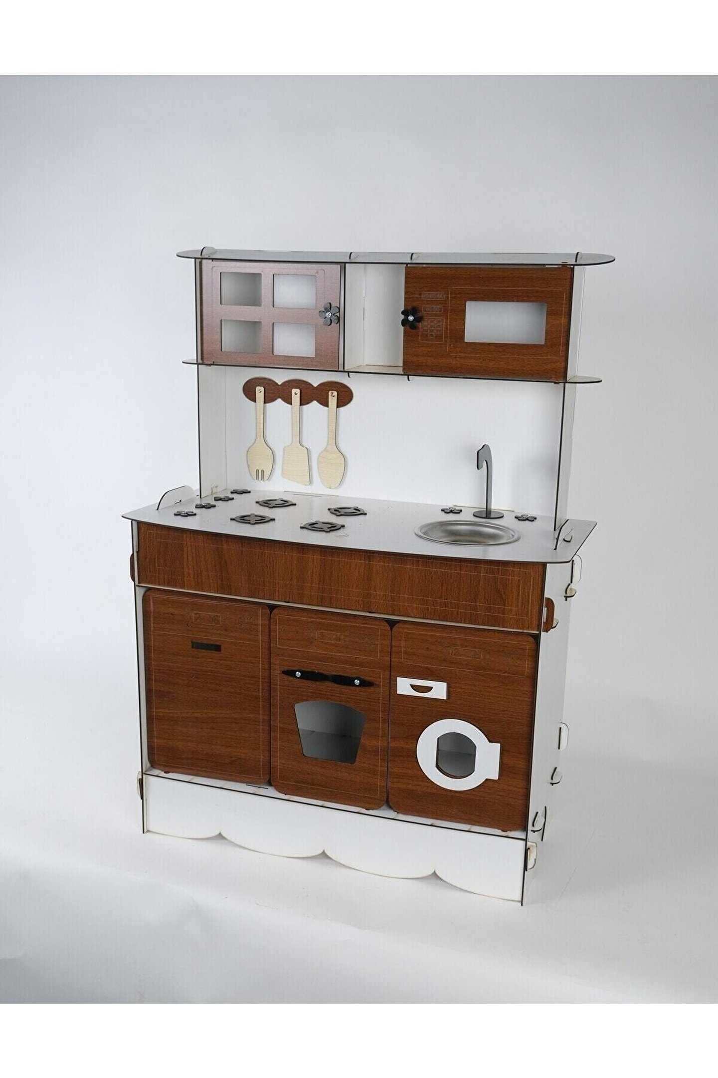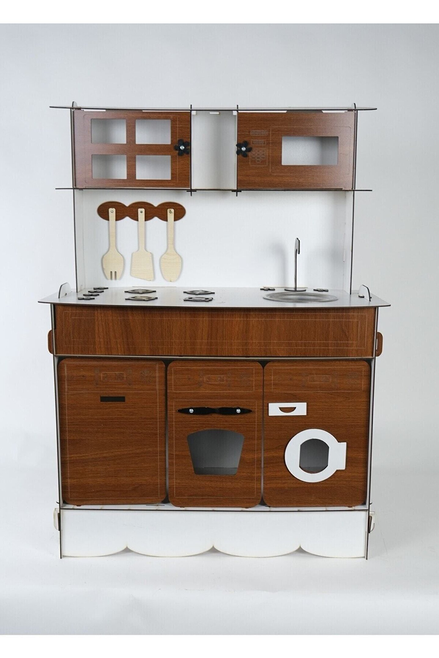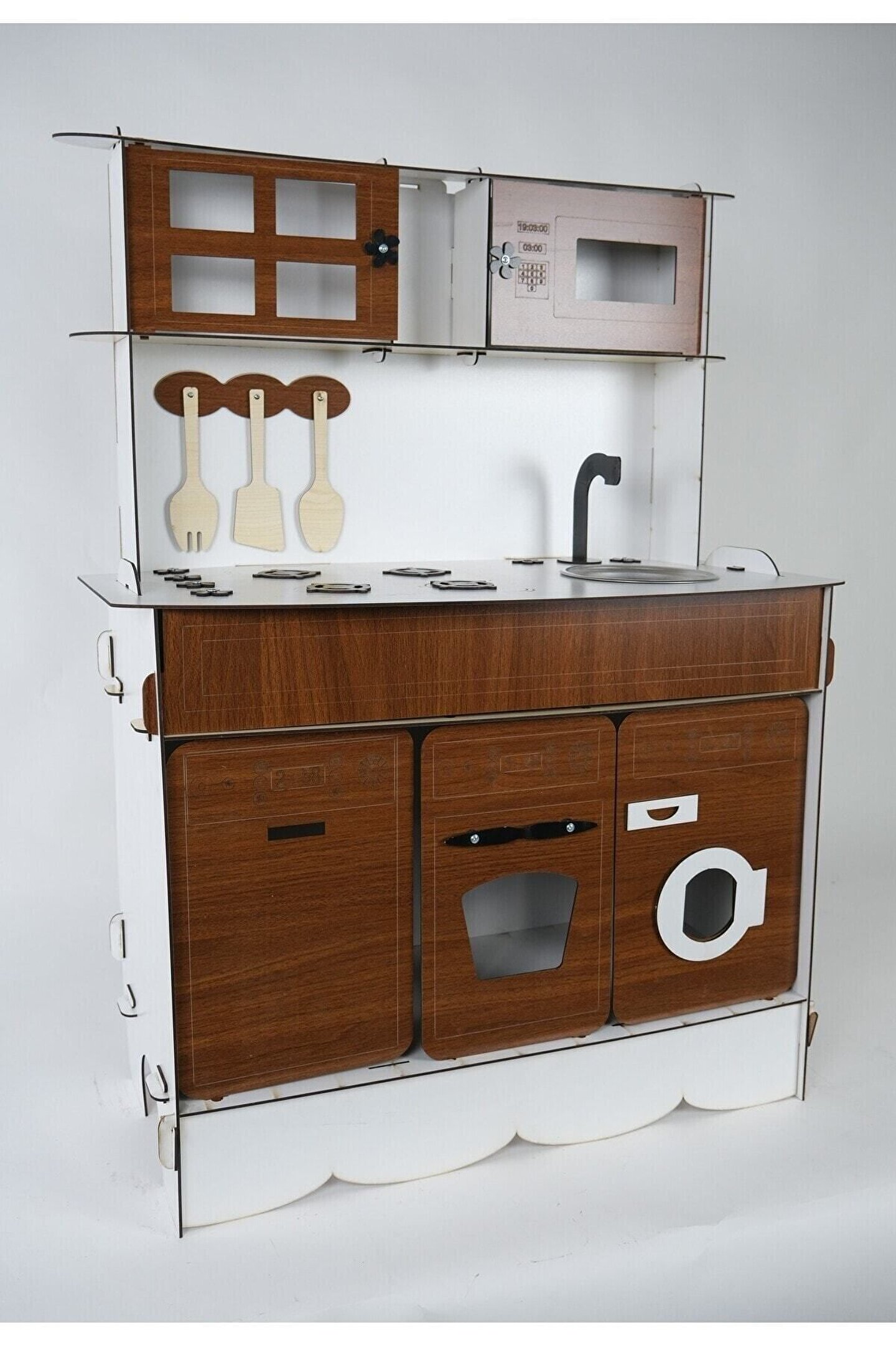 Ürün kendi imalatımız olup 3 mm 1. sınıf MDF 'den üretilmiştir. ; Tek yüz MDF değildir, ÇİFT YÜZ MDF'dir, yani her iki yüzeyi de boyalıdır. ; Genişlik 70cm, Yükseklik 100cm'dir. ; Doğum günü hediyesi olarak tercih edilen ürünler arasındadır. Evcilik oyuncakları , oyuncak mutfak setleri, eğitici oyuncaklar , kız çocuk oyuncakları alanında tercih edildiği gibi erkek çocuklar içinde oldukça talep gören bir oyuncaktır. ; Montessori etkinlikleri ne uygun olarak tasarlanmıştır, çocukların hayal gücünü ve motor becerilerini geliştirir. ; Bu ürün 3mm'dir. 6mm ürün için "Ahşap Oyuncak Mutfak 6mm" olarak inceleyebilirsiniz. Her iki üründe aynı ölçü ve özelliklerdedir sadece kalınlık farklıdır çok inceymiş açıklaması ile iade kabul edilmemektedir, 3 mm olarak binlerce kişi memnun kullanmaktadır. ; Paket içerisinde kullanım kılavuzu vardır yine de kurulum esnasında sorularınız olursa kılavuzun arkasındaki numaradan ulaşabilirsiniz. ; Kargoda hasar görmemesi için özenle paketlenmektedir, olası bir hasar durumunda parçalar ücretsiz olarak kargo edilir. ; Boyalı olduğundan boya için ayrıca uğraş gerektirmez sadece kurulum yaparak kullanıma başlayabilirsiniz. ; Farklı renklerde üretimi yapılmaktadır.;