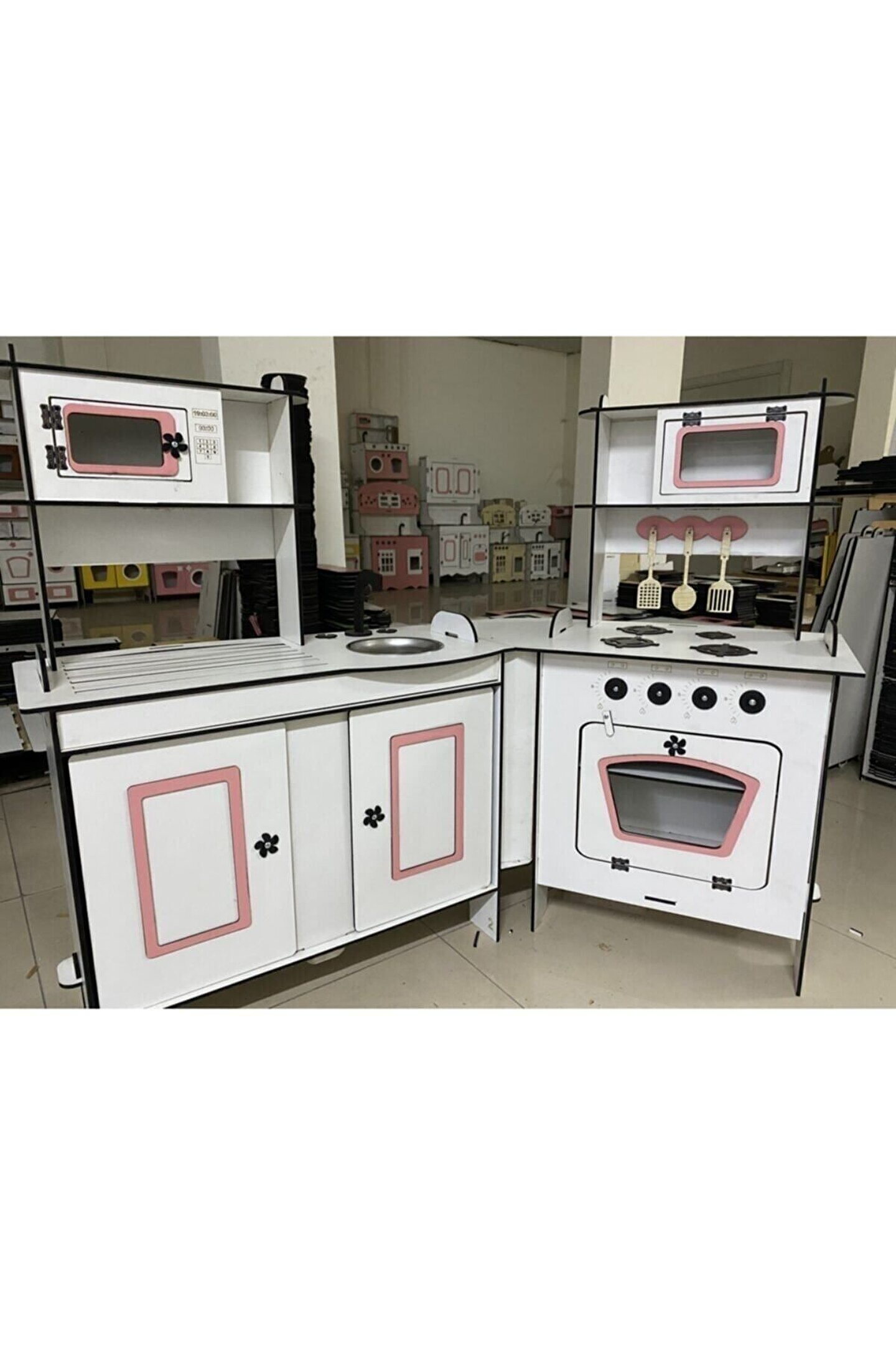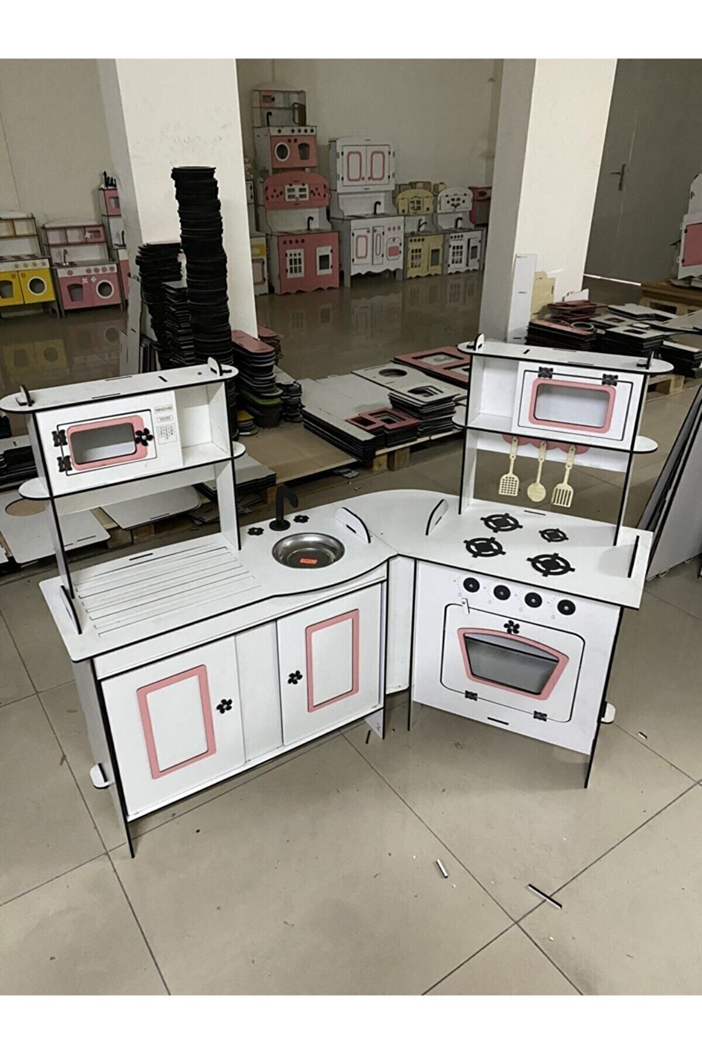 Bu Ahşap Oyuncak Mutfak L Modeli ile küçükçocuğunuzun mutfak yeteneklerini keşfetmesine izin verin. Bu ahşap mutfak,yaratıcı oyunlar için mükemmeldir ve her odada harika görünecek modern birtasarıma sahiptir. MDF malzemeden üretilen bu üründe fırın, lavabo, çamaşırmakinası, dolap ve tezgah ile yemek pişirmeyi eğlenceli ve gerçekçi halegetirmek için bulunur. Canlı renklerin çocuğunuzun dikkatini çekeceğinden veçocukluk sevincinin kalıcı anılarını yaratacağından emin olabilirsiniz. · Genişlik130cm, Yükseklik 100cm, Derinlik 40cm'dir. ; Malzemesi 6.4mm MDF'dir.; Keskinkenarları olmadığı ve toksik olmayan malzemelerden yapıldığı için çocuklar içingüvenlidir. ; Gerçek birpişirme köşesi deneyimi sunmak için L model tasarıma sahip ideal bir ahşap oyuncakmutfak. ; Mükemmelgörünüm için beyaz ve pembe boyalı yüksek kaliteli MDF ahşap konstrüksiyon. ; Fırın, lavabo,ocak gibi gerekli tüm aksesuarlarla birlikte gelir. ; Isıyıyükseltmek ve gerçekçi hissetmesi için ocak üzerinde dört hareketli düğme. ; Gıda maddelerive diğer şeyler için geniş saklama rafları. ; Lavabo,bulaşık yıkamayı taklit etmek için mutfağın en favorisi. ; Dolaplar vekancalar için asılı raf. ; Kullanılmadığındamontajı ve sökülmesi kolaydır. ; Önerilen yaş:3 yaş üstü. ; Her durum içinmükemmel bir hediye. ;
