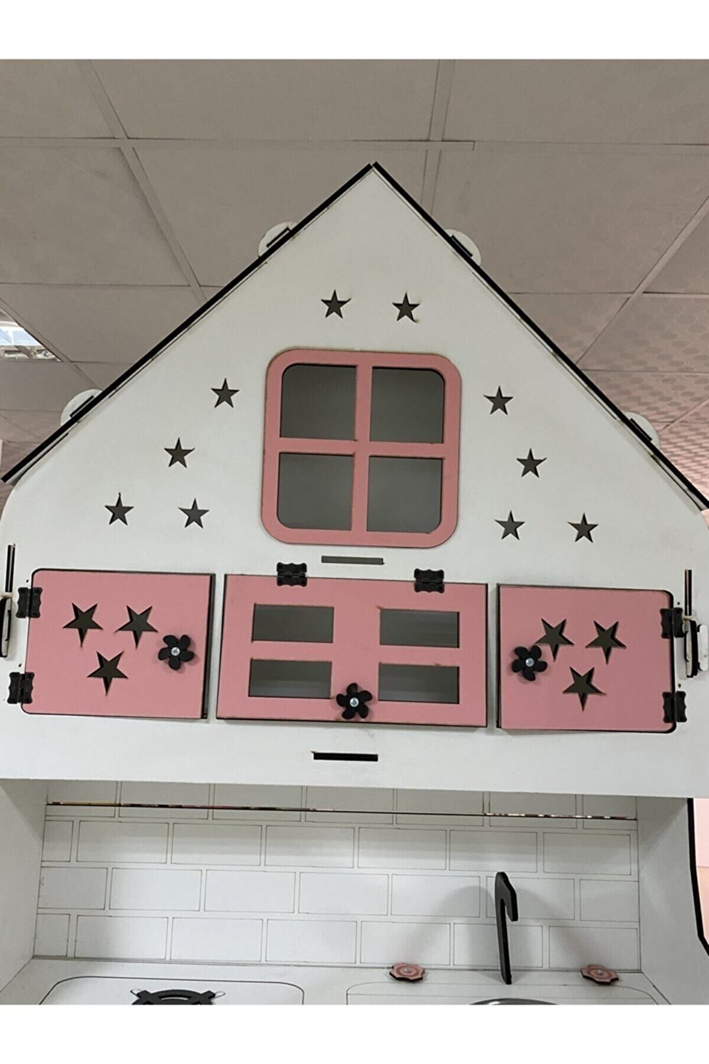 Ürün kendi tasarım ve kendi imalatımızdır piyasada eşi benzeri yoktur yüksekliği 145 cm eni 77 cm dir. ; Çocukların rahatlıkla ayakta oynayabileceği boyuttadır. ; Ürün 6.4 mm orijinal MDF'den üretilmektedir sağlam ve dayanıklıdır. ; İsteğe göre ışık takılabilir, çatı katındaki pencere ve yıldızlardan ışık çıkıyor ışıklı model fiyatı +125 TL'dir. Ürünümüzde kargoda veya kurulum sırasında kırılma olursa parça firmamız tarafından ücretsiz gönderilmektedir. ; Çocukların motor becerileri ve hayal güçleri gelişimini destekleyen harika tasarım gelişim oyuncağıdır ; Ürünümüzü sipariş verdikten sonra msj ile renk belirtebilirsiniz, renk belirtilmezse görseldeki ürünün aynısı gönderilir. ; Doğum günü hediyesi olarak tercih edilen ürünler arasındadır. Evcilik oyuncakları , oyuncak mutfak setleri, eğitici oyuncaklar , kız çocuk oyuncakları alanında tercih edildiği gibi erkek çocuklar içinde oldukça talep gören bir oyuncaktır. ; Not; ürün özellikleri, ölçüler ve kullanılan malzemeler açıkça belirtilmiştir. Ürün iadesi kabul edilmemektedir buna göre sipariş verilmesini rica ederiz ;