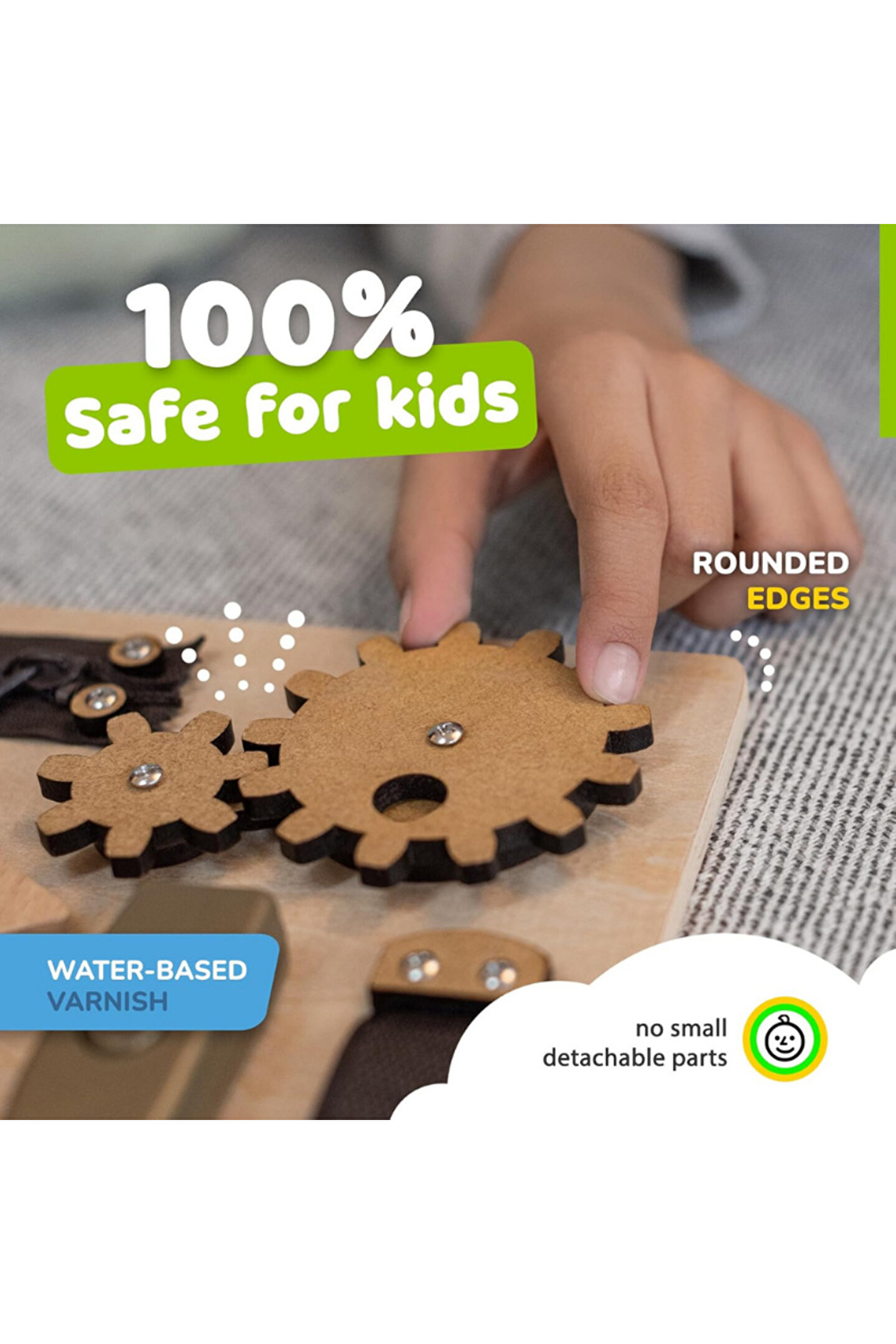 【Çoklu aktivite seti】 Çocukların labirenti nasıl çözeceklerini, dişli çarkları nasıl döndüreceklerini veya anahtar düğmesine "tıklayacaklarını" oynamaları ve öğrenmeleri için özenle hazırlanmış, kilitli ve mandallı ahşap aktivite panosu. Evde eğitim alırken veya seyahat ederken çocuğunuzu meşgul edecek mandallı pano.