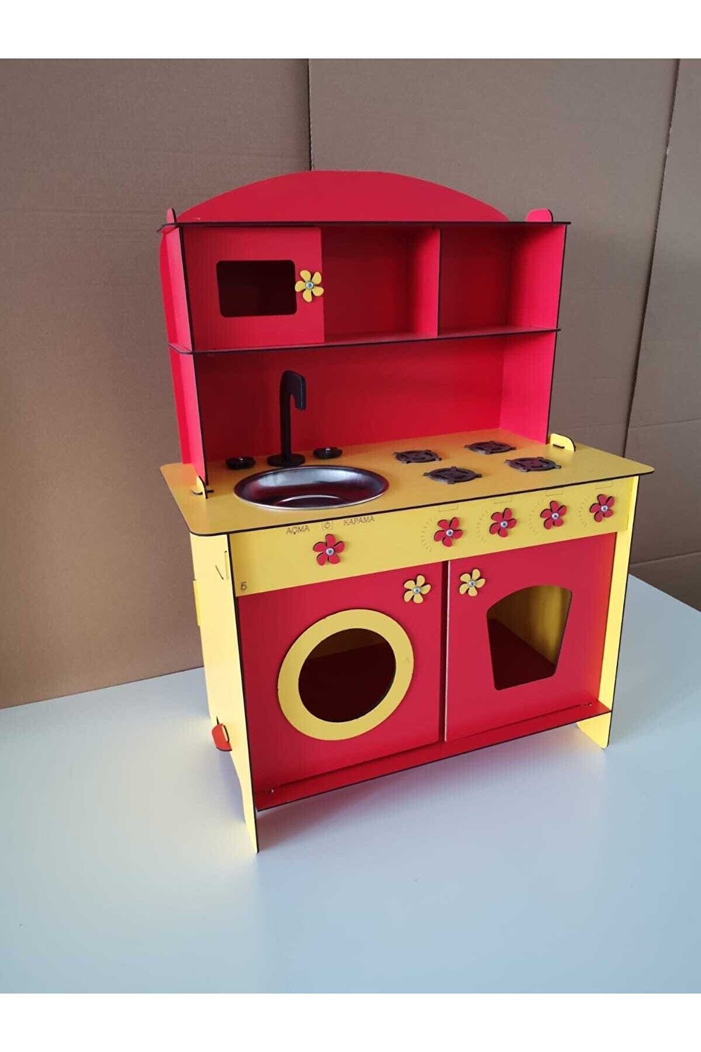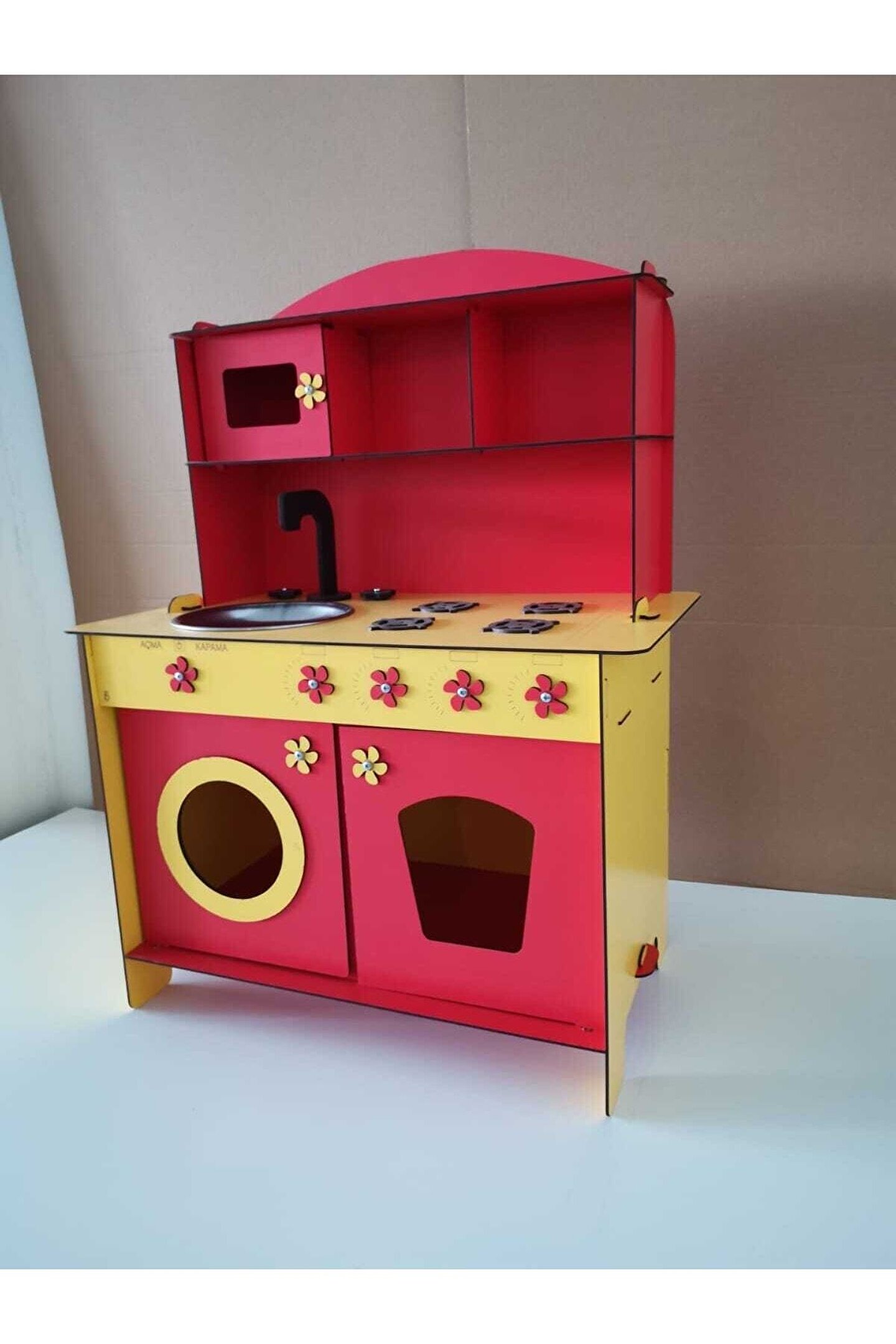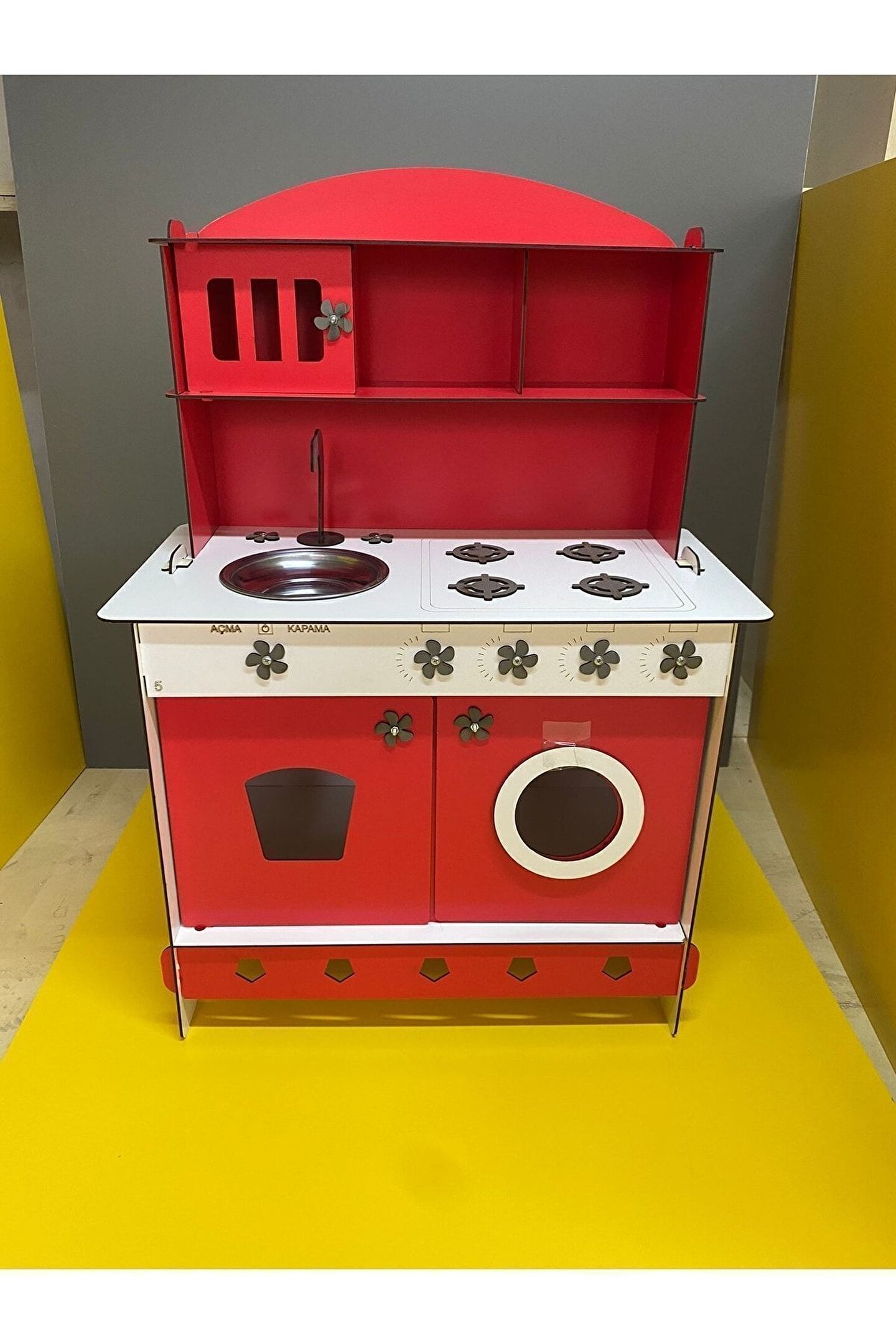 bahadır grup Montessori Eğitici Ahşap Çocuk Oyuncak Mutfak Kırmızı 3 Mm 84x60 Cm