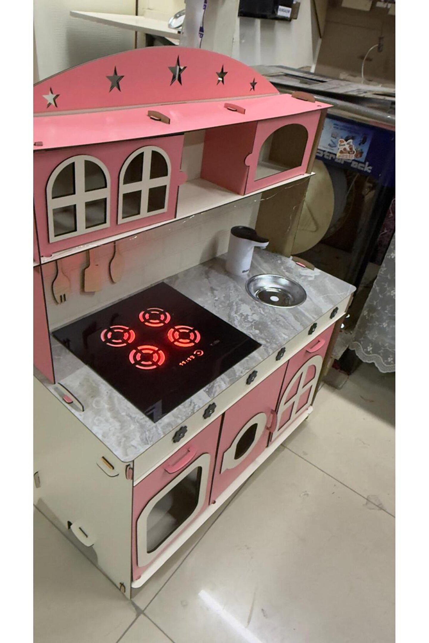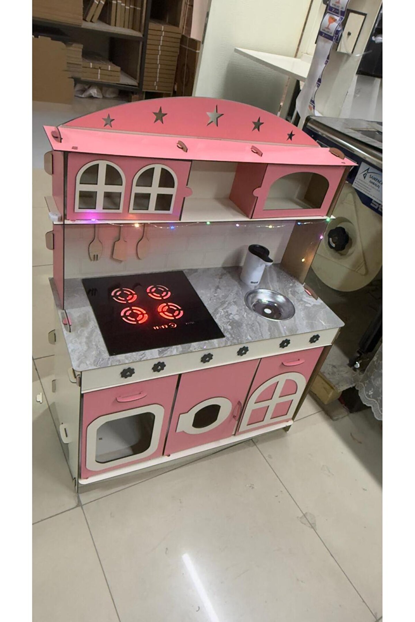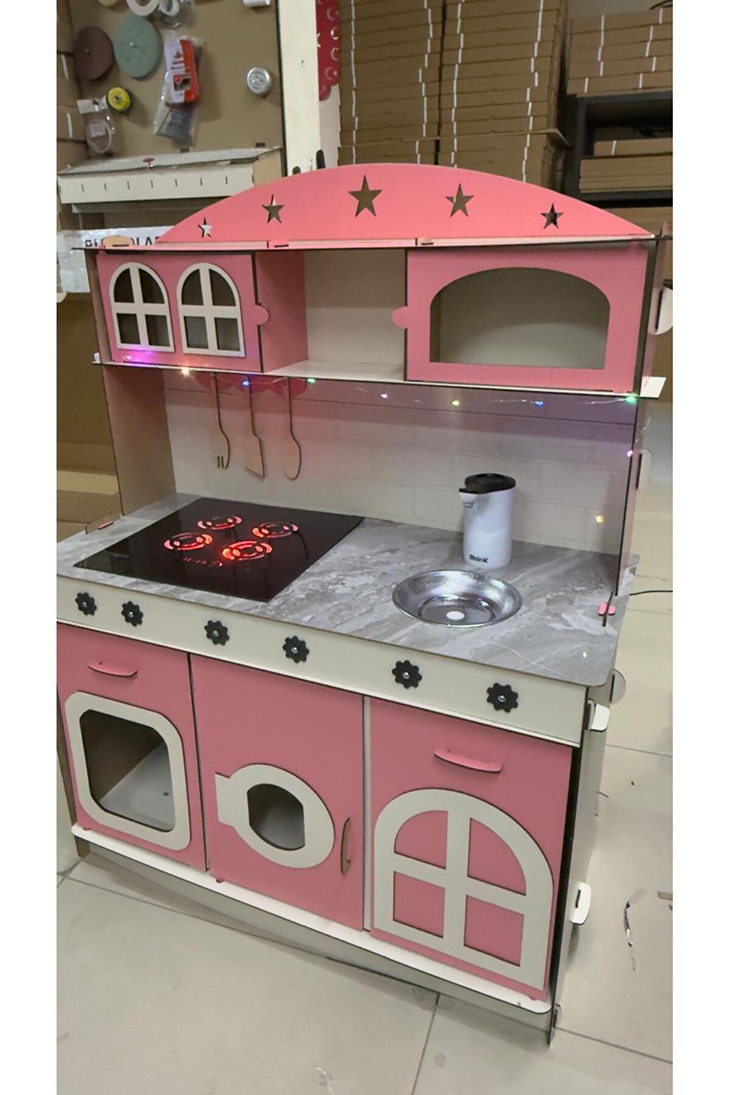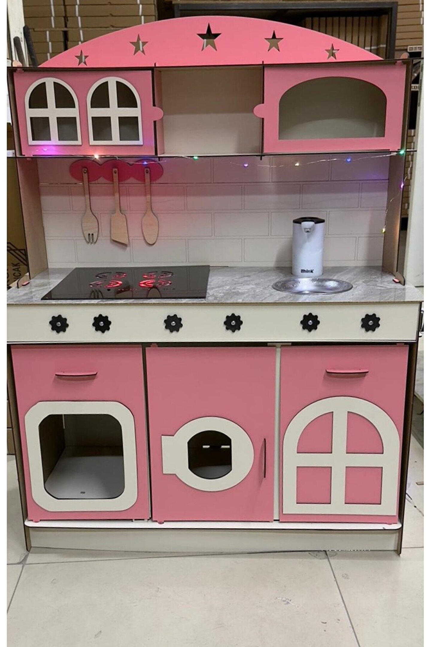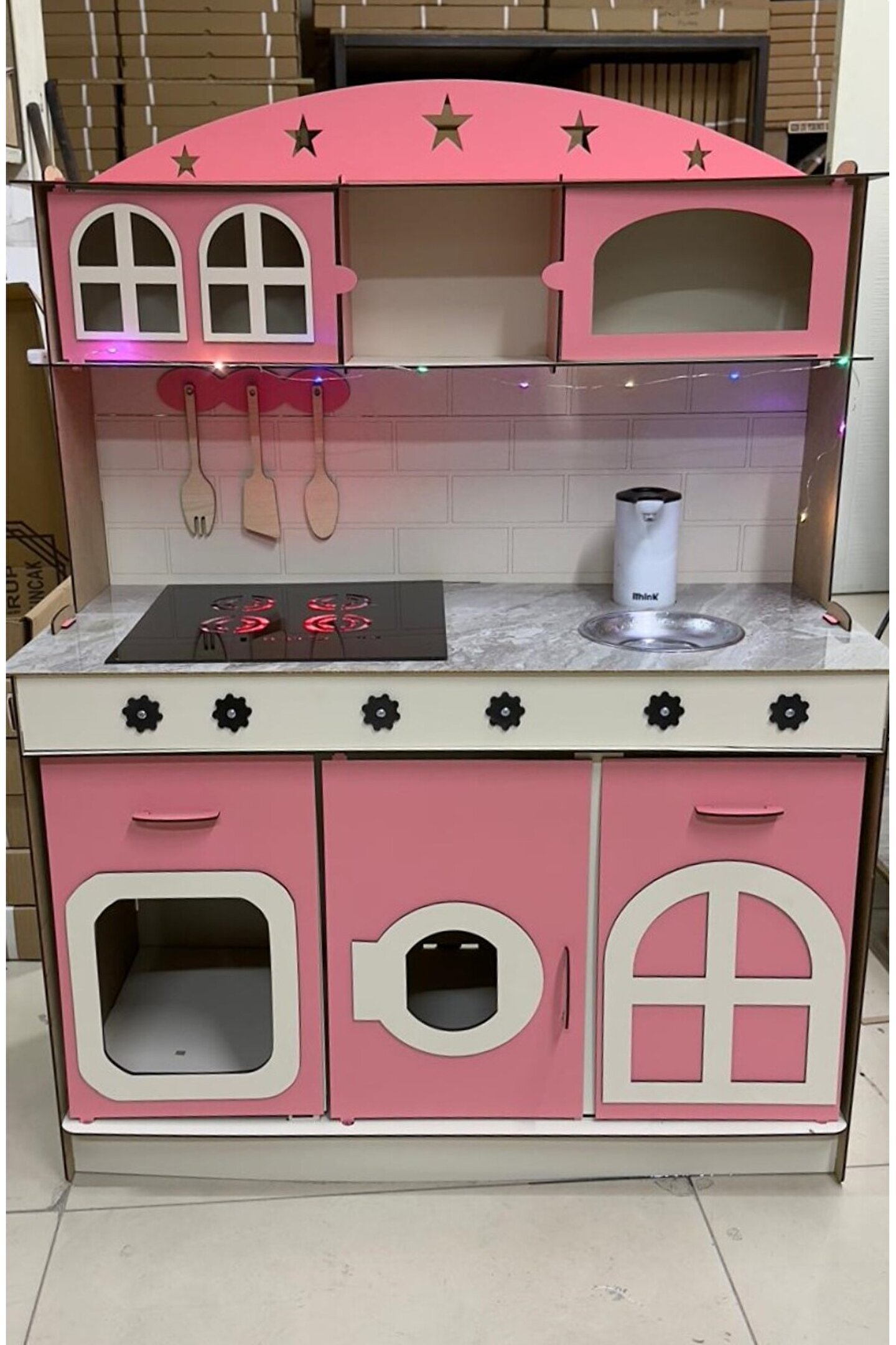 - Su akışlı tasarımı ile çocukların hayal gücünü geliştiren ve eğlenceli vakit geçirmelerini sağlayan ahşap oyuncak mutfak.; - LED aydınlatma özelliği sayesinde karanlıkta bile net ve parlak bir görünüm sunar, böylece çocuklar mutfağında rahatça oynayabilirler.; - 3mm kalınlıklarda her zevke uygun tasarım; dayanıklılık ve estetik bir arada.; - Çocuklarınızın el becerilerinin gelişimine katkıda bulunurken aynı zamanda yaratıcılıklarını da teşvik eder.; - 3 yaş ve üzeri çocuklar için idealdir; güvenli malzemelerden üretilmiştir ve ebeveynlerin endişe duymasına gerek kalmaz.; - Yerli üretim olup, Türkiye'de üretilmiş olmasıyla yerel ekonomiye destek sağlar ve kalite standartlarına uygunluğu garanti eder.;