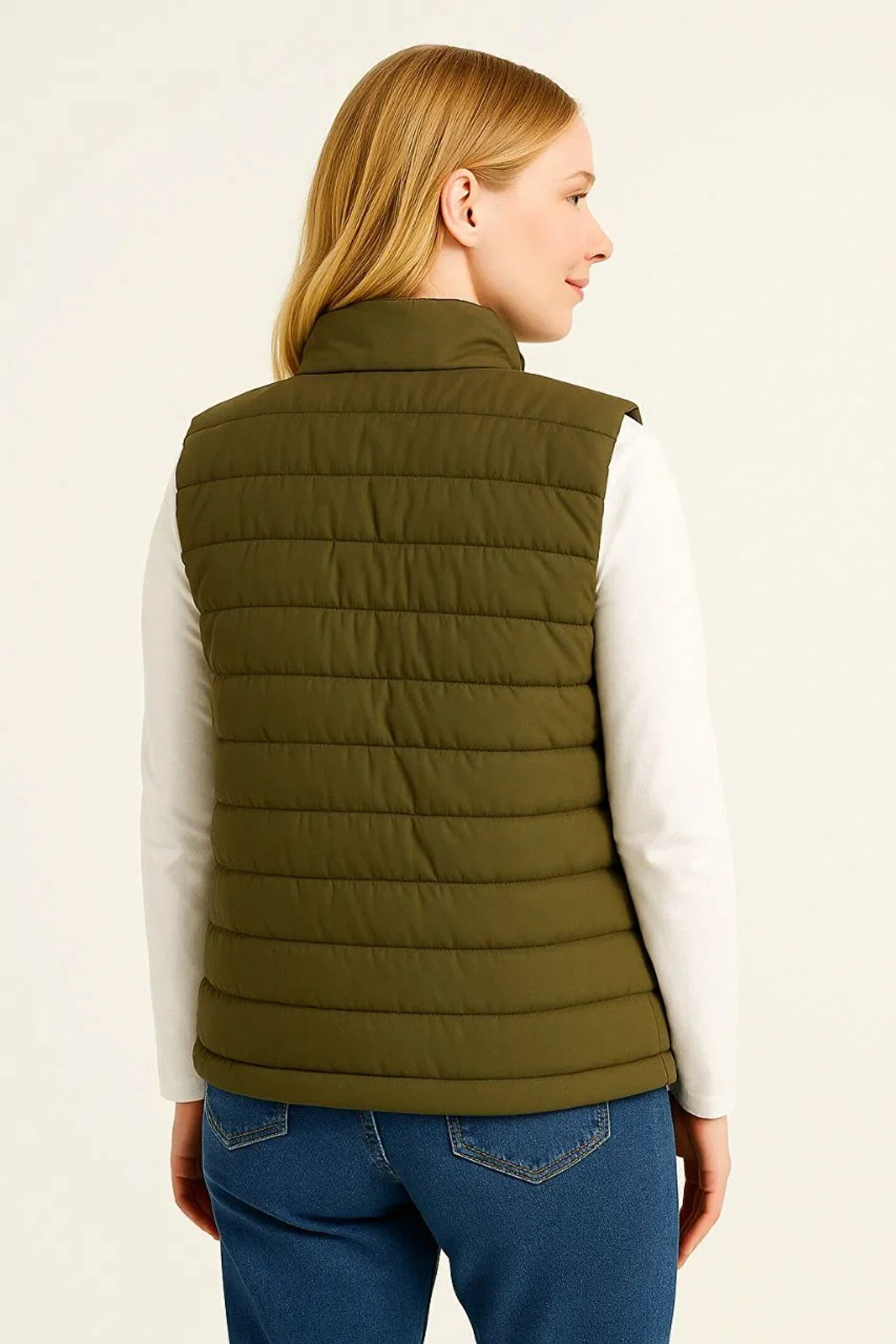 Şişme Fermuarlı Yelek Su Itici Kapitone Astarlı Kumaş Cepli Hafif Kışlık Spor Rahat Kalıp - Haki