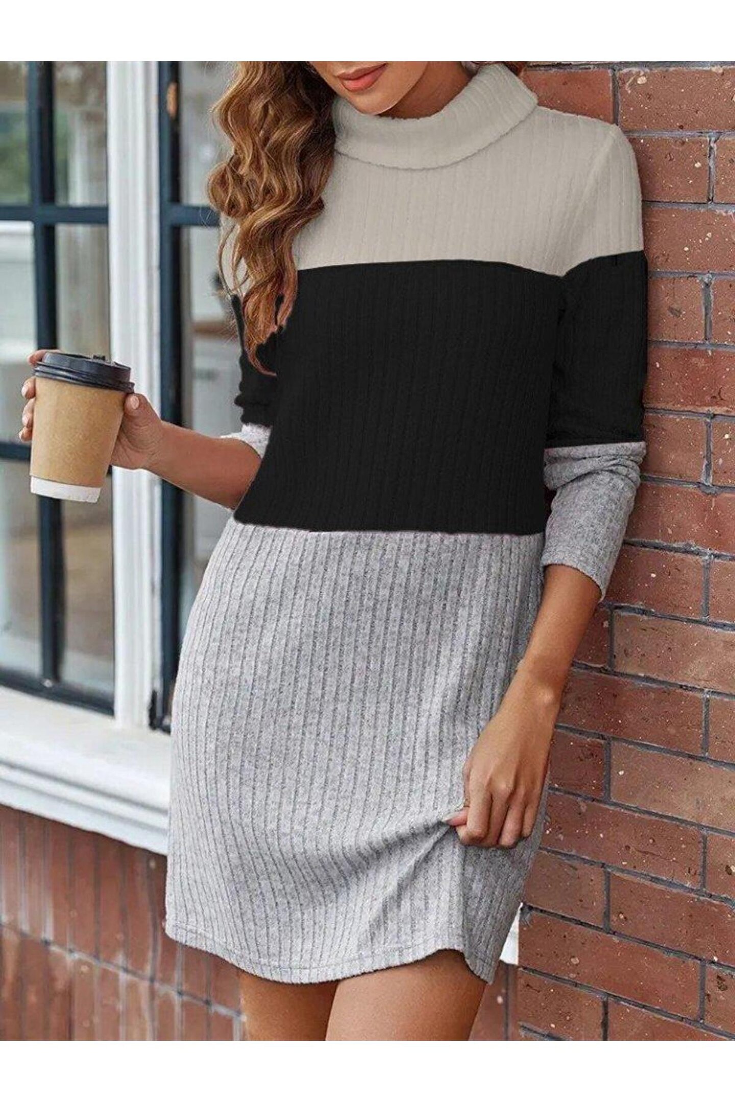 BALCI Kadın Uzun Kollu Balıkçı Yaka çizgili çok Renkli Mini şardonlu Kaşkorsel Elbise