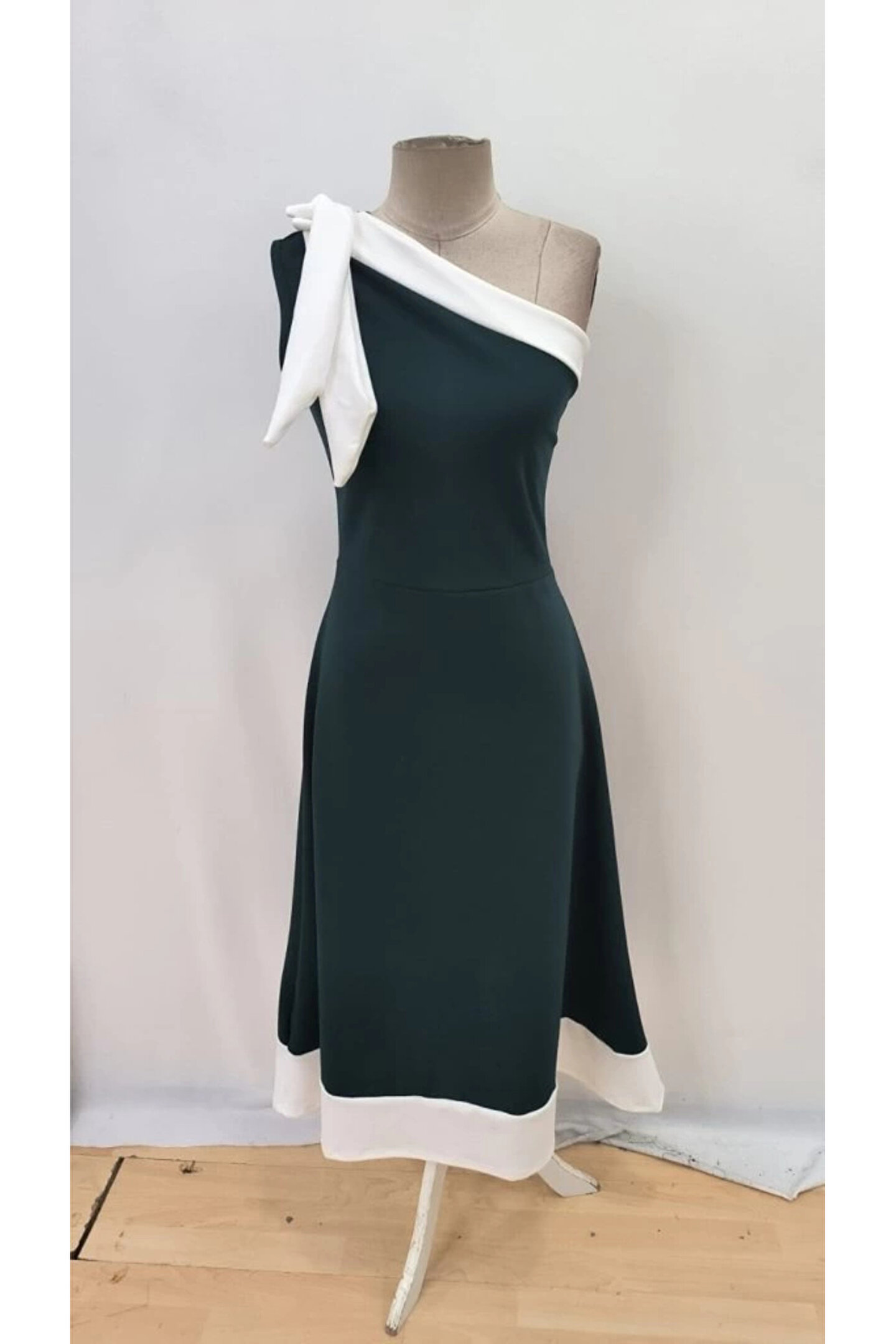 BALCI MDB Kadın Tek Omuzu Açık Omuzlardan Kurdela Detaylı çift Renkli Ithal Krep Elbise