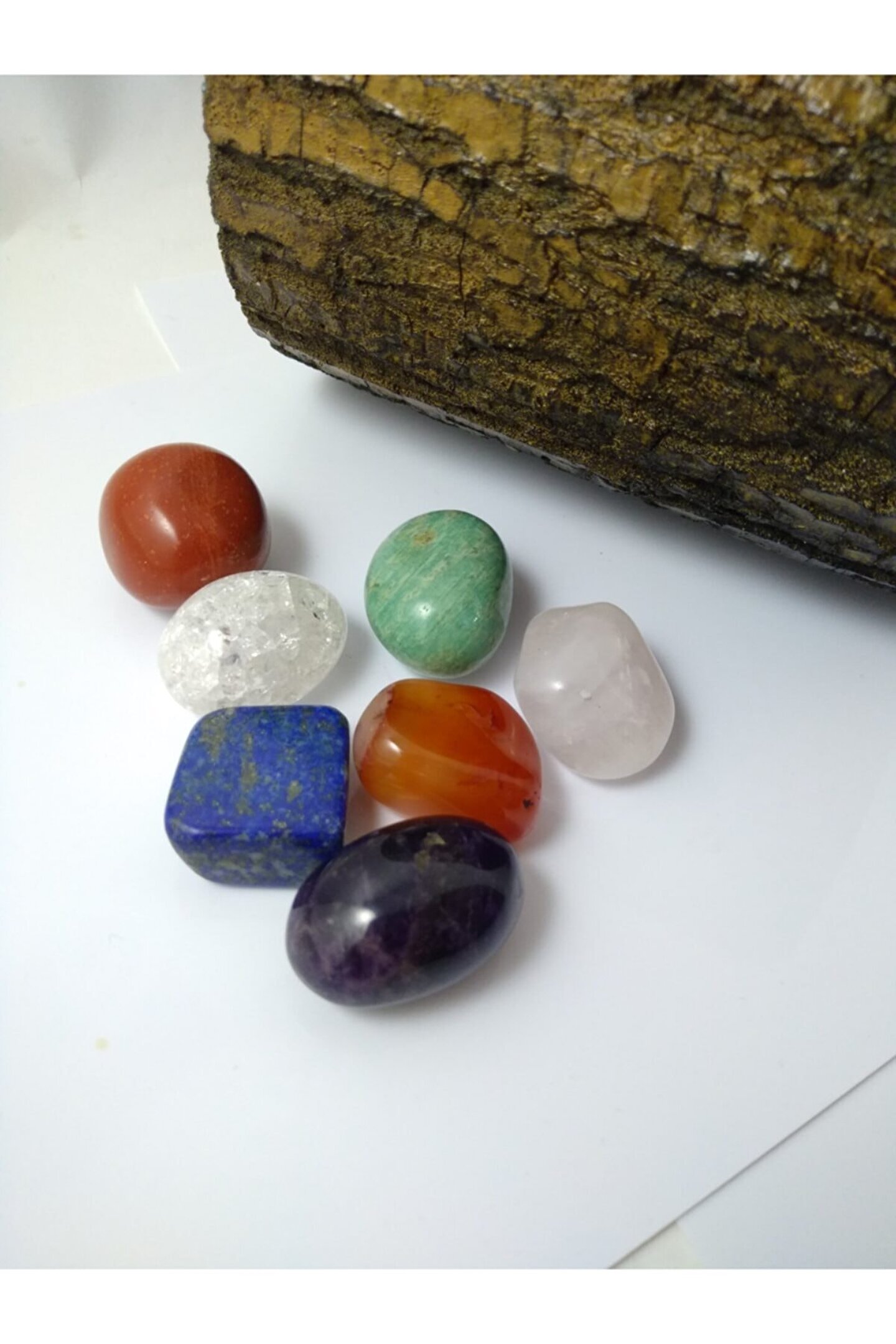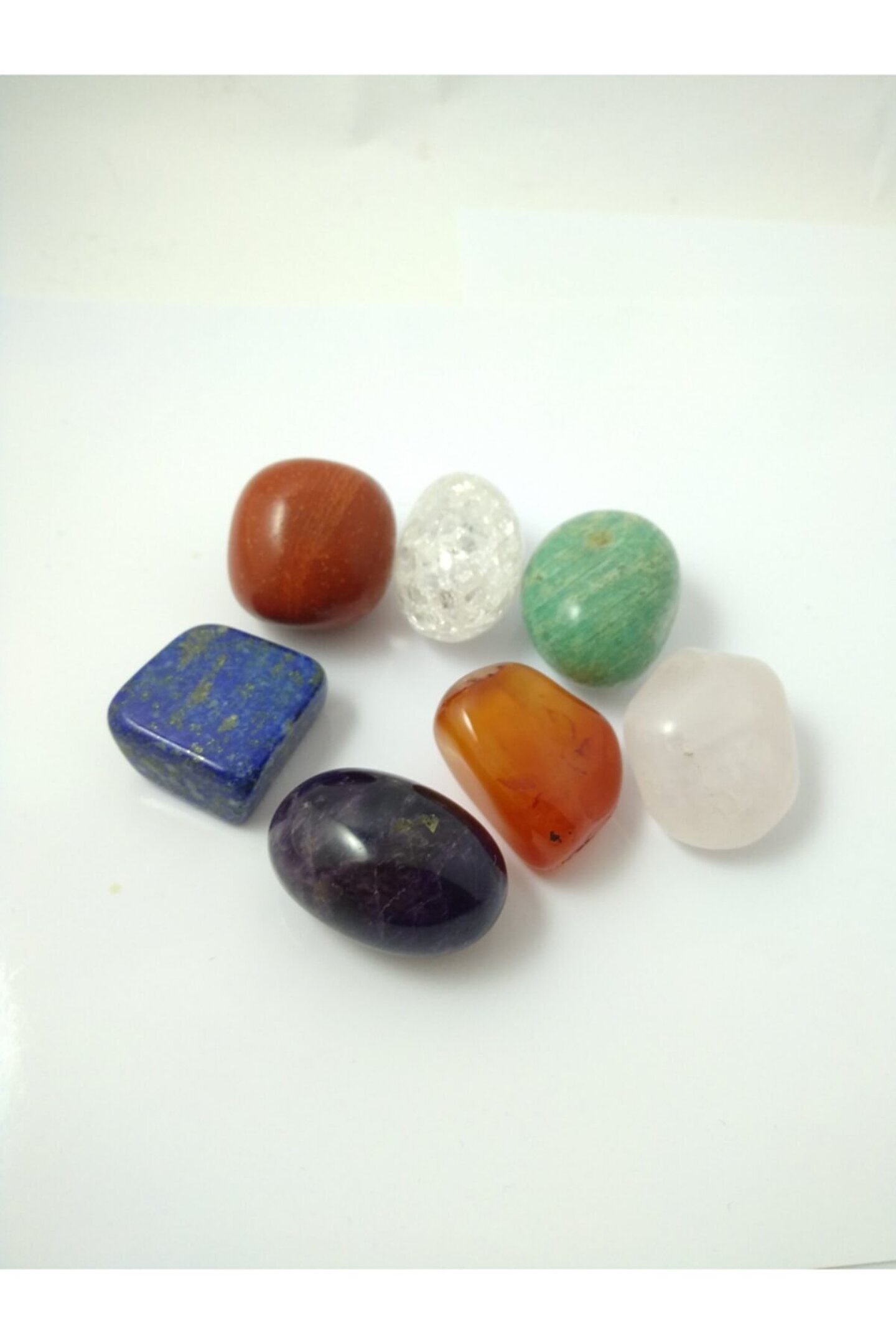 ÇAKRA TAŞLARI / 7 ÇEŞİT DOĞALTAŞ BİBLO Çakralar, bedenimizde bulunanenerji merkezleridir. Çakra sistemindeki temel amaç bedenin enerji merkezlerini harekete geçirereksağlıklı çalışmasını sağlamak, ruhsal ve bedensel bütünlüğü oluşturmaktır. Çakra taşları, değişik 7renkten oluşur. Her bir renk bir çakra katmanını simgeler. Ürünün Özellikler i; Fiyata 7çeşit doğaltaş dahildir. Üründekullanılan doğaltaşlar; ametist, lapis lazuli, aventurin, akik ve pembe kuvars,kristal kuvars ve jasper’dır. Taşlarfotoğrafta görünen kutu ile birlikte gönderilmektedir. Taşlar toplam 90/100 grarasıdır.
