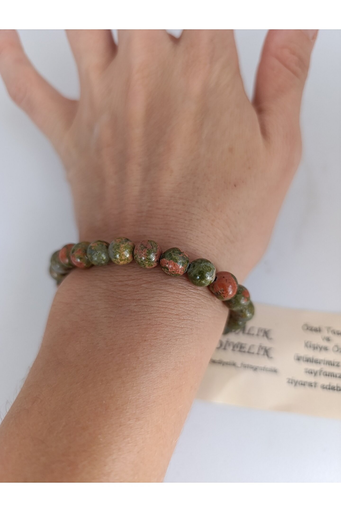 Bedenleri Standart olup, lastikli misina ile hazırlanır. Bileklik ebatları sabit olup(17-18 cm) tane şekli 8 mm ve küre kesimdir. *Ürünümüz size hediye kutusu içinde yedek taş ve misina ile gönderilecektir