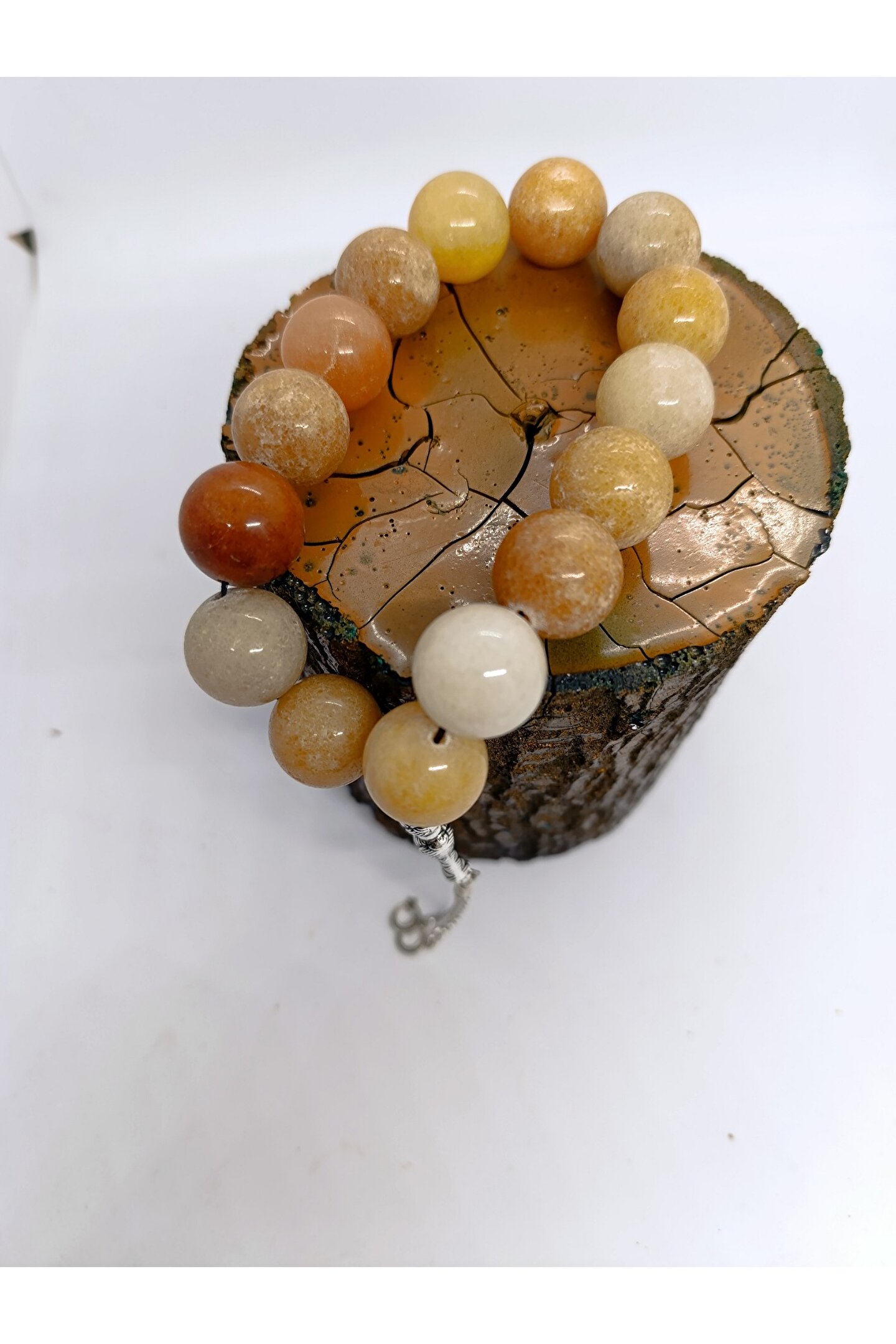İRİ KESİM DOĞALTAŞ TESPİH/ Sarı AKİK TAŞI ŞAKŞAK TESPİH 18mm-1034