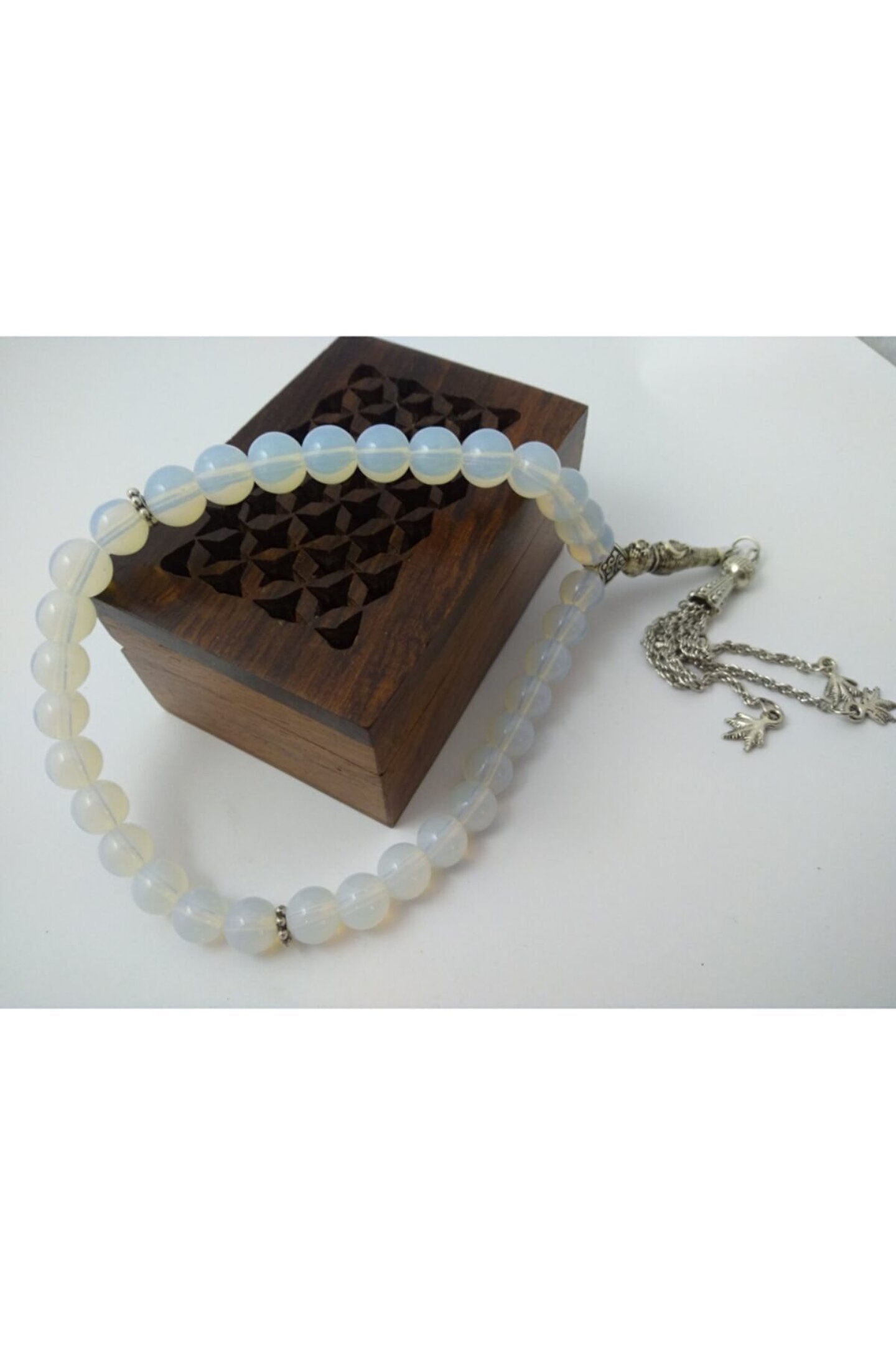 Opal aytaşı tespih / doğaltaş tespih; aytaşı (dengeleyici taş): Aytaşı, ince tabakalar halinde oluşur ve ışık tabakalar arasında nüfuz ettikçe parlaklığını oluşturmak için kırılır ve birçok yöne dağılır.; farkındalığı arttırdığı gibi kullanıcı üzerinde sakinleştirici ve yatıştırıcı etkisi vardır.; çakraları dengeleyen ve negatif enerjileri topraklayan özelliği vardır. Aynı zamanda sezgileri, rüyalarımızı hatırlamayı ve empati yeteneğini geliştirir.; özellikle dolunay akşamında rüyaları hatırlamamızı sağlar. Yaratıcılığı ve kendini ifade etme yeteneğini geliştirir.; aytaşı “gezgin taşı” olarak da bilinir bu yüzden sürekli seyahat edenleri yanlarında taşındığında koruduğuna inanılır.; yeni başlangıçlarda, aşk ve iş yaşamında başarı, şans getirdiğine inanılır.; burçları; yengeç, balık, akrep, koç, yay uyumlu olduğu çakra; 2.Alt karın çakrası, 6. Alın çakrası (üçüncü göz); ürünün özellikleri: Tane boyutu 8 mm ve küre kesimdir. Bu orijinal doğaltaş tespih 33’lüdür. Bu özel tasarım tespih size hediye kutusu içinde gönderilecektir. Görselde gördüğünüz ürün size gönderilecektir. Istediğiniz püskül modelini seçebilirsiniz sadece bize bildirmeniz yeterli.