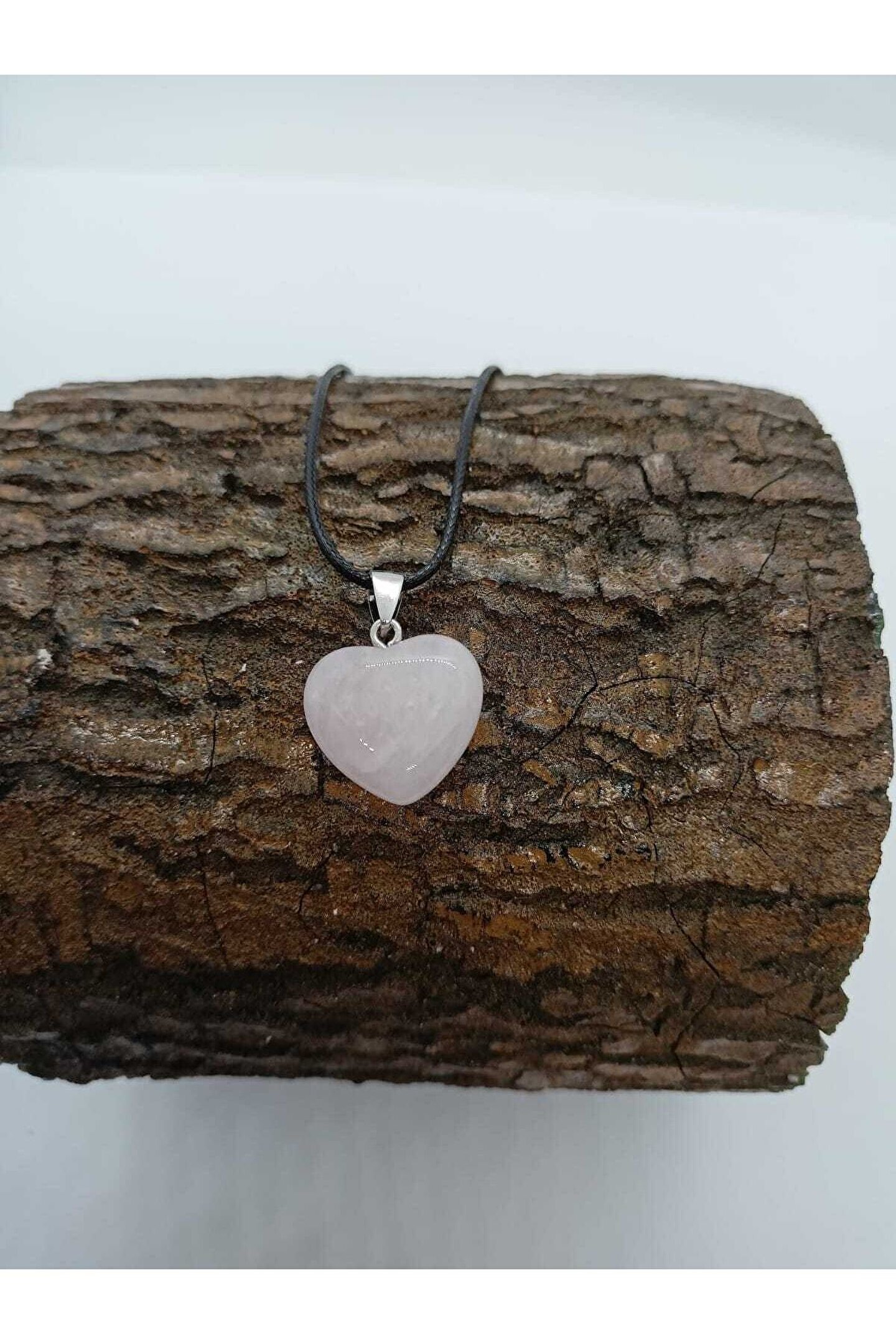 BalıkHediyelik Pembe Kuvars Taşı Kolye Kalp Şeklinde Doğaltaş Koly