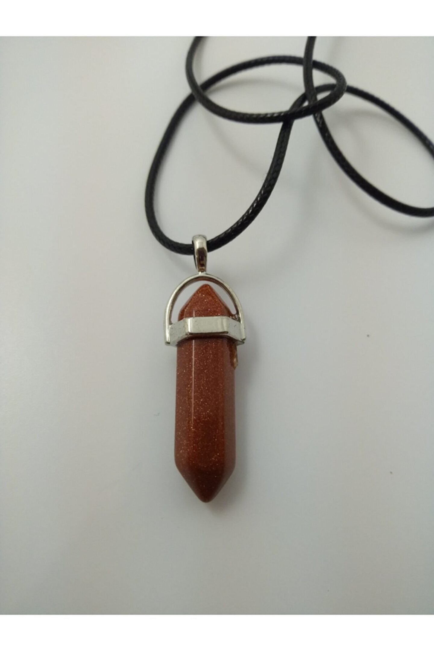 YILDIZ TAŞI KOLYE/ ÇİVİ ŞEKLİNDE DOĞALTAŞ KOLYE YILDIZ TAŞI(Aşk ve Neşe Taşı): Yıldız taşının faydalarından en bilineni kişinin açık yürekliliğini sembolize eder.Hayal taşı olarak da bilinir. Enerji gücü çok yüksek bir taştır. Sert görünümlü insanların görünüşleri ve duygularında yumuşama sağladığı bilinmektedir. Kişiye neşe, mutluluk, huzur ve yaşama sevinci verdiğine inanılır. Ürünün Özellikleri; Ürünlerimiz gerçek doğal taş olup çivi şekli ile tasarlanmıştır. Ürünümüz size hediye kutusu içinde gönderilecektir. Parfüm, Alkol v.b. gibi Maddeler ile Temasından Kaçınılmalıdır. Boyutu yaklaşık 3,5 cm'dir Suni Deri ip uzunluğu: 43 cm. Paket İçeriği: 1 adet