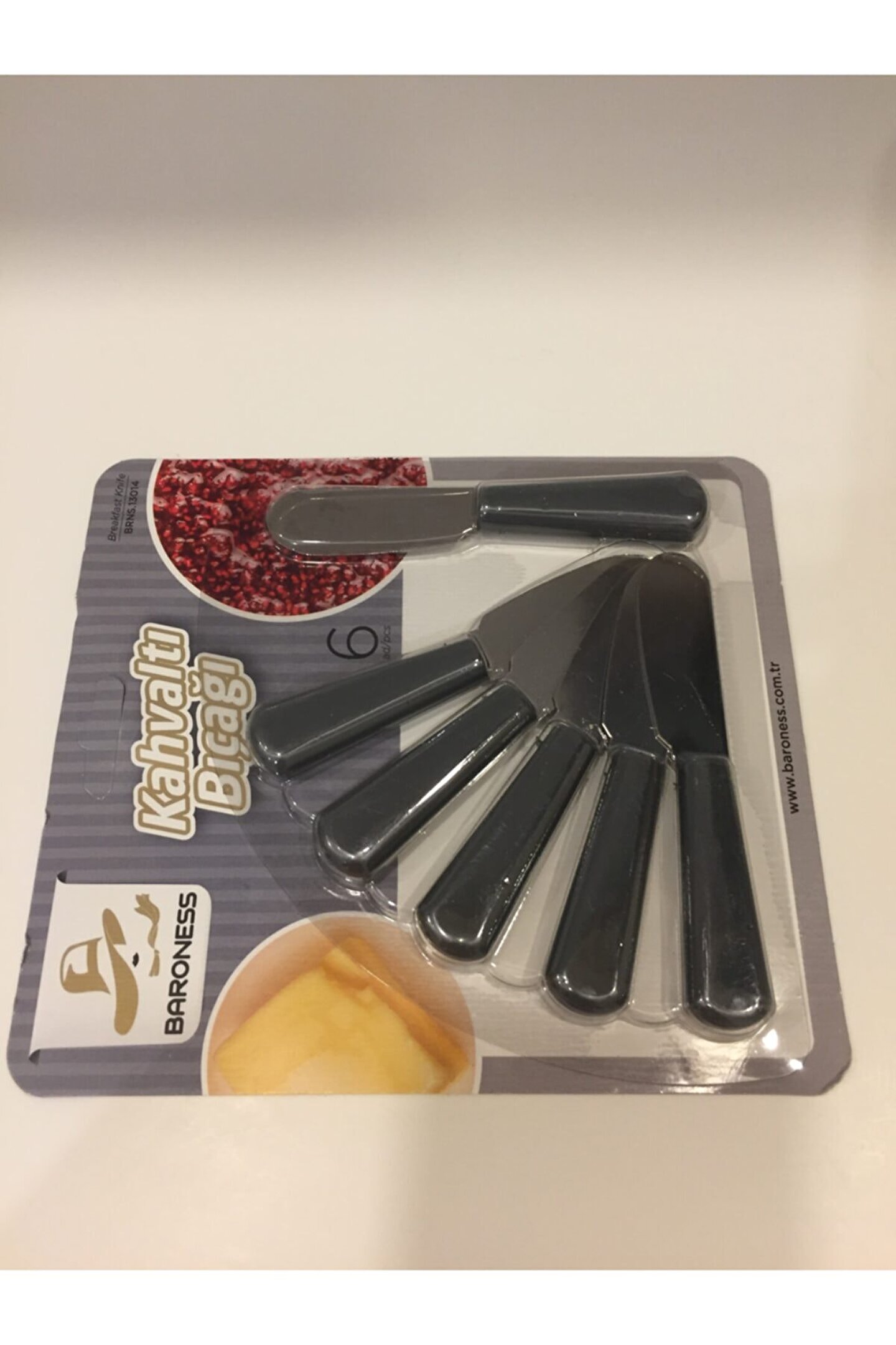 Plastik Saplı Lüx 6 Adet Tereyağı-Reçel Bıçağı. ; 11 cm x 6 Adet ; 6 adet koyu gri sap renginde tereyağı peynir bıçağı. ;