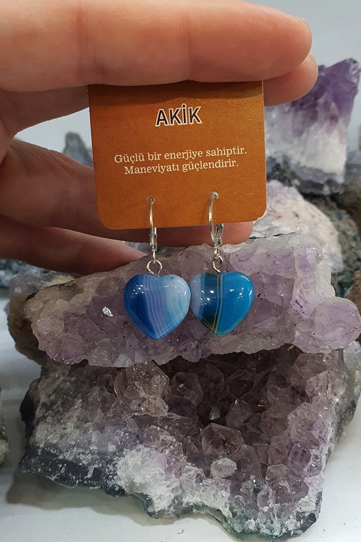 Doğal akik taşı kullanılarak üretilmiş, enerji ve yaşam sevinci veren bir aksesuar; Her bir küpe, benzersiz desenleri ve renkleriyle dikkat çeker, kişisel tarzınıza özgün bir dokunuş katar; Doğal taş materyali sayesinde, her kullanımda doğanın saf enerjisini yanınızda taşıyabilirsiniz; Enerji taşı olarak bilinen akik, pozitif titreşimleriyle stresi azaltmaya ve ruh halinizi iyileştirmeye yardımcı olur;