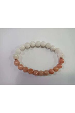 Doğal taş bileklik, Ay taşı ve Güneş taşı gibi değerli doğal taşlardan üretilmiştir.; 8mm kalınlığında olan bu bileklik, şık ve zarif tasarımıyla dikkat çeker.; Doğal taştan yapılmış olması, her bireyin benzersiz bir parça sahibi olmasına olanak tanır.; Günlük kullanım için ideal olan bu bileklik, hem rahatlık hem de estetik bir görünüm sunar.; Herhangi bir kimyasal işleme tabi tutulmadan doğal haliyle sunulan bu bileklik, doğallığını korurken şıklığınızla da ön plana çıkmanızı sağlar.; Doğal taş bilekliğin hafifliği sayesinde gün boyu rahatlıkla takabilirsiniz.;