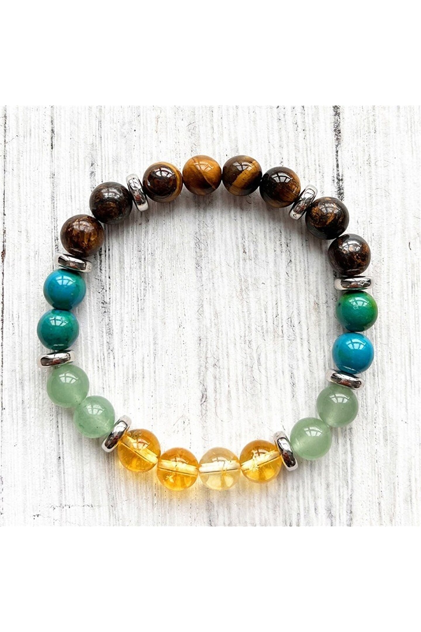 Sertifikalı Sitrin & Aventurin & Kaplan Gözü & Krizokol Doğal Taş Bileklik 8mm