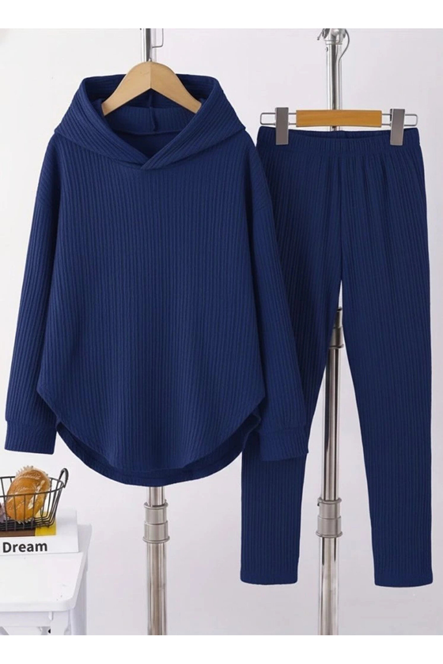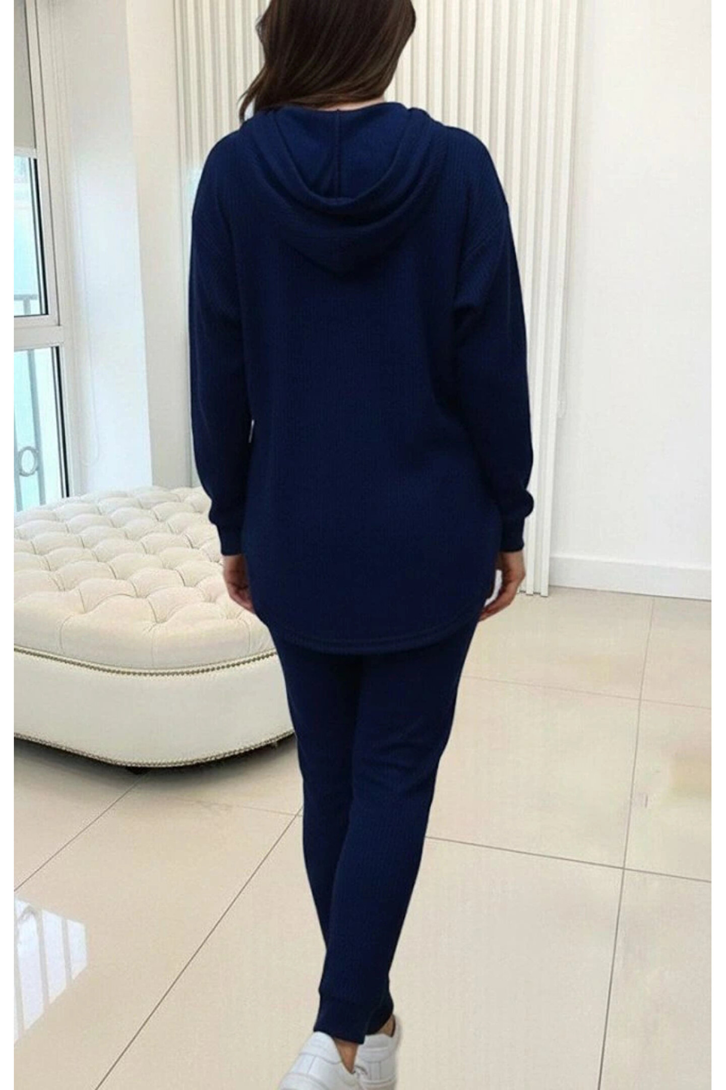 BEFAON Kadın Uzun Kollu Kapşonlu Meloni Bluz Ve Pantolon Ikili Takım