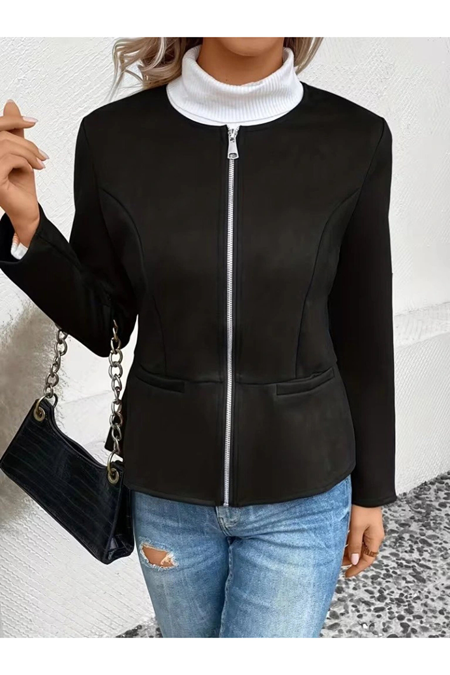 BEFAON Kadın Uzun Kollu Yuvarlak Yaka önden Fermuarlı Süet Ceket