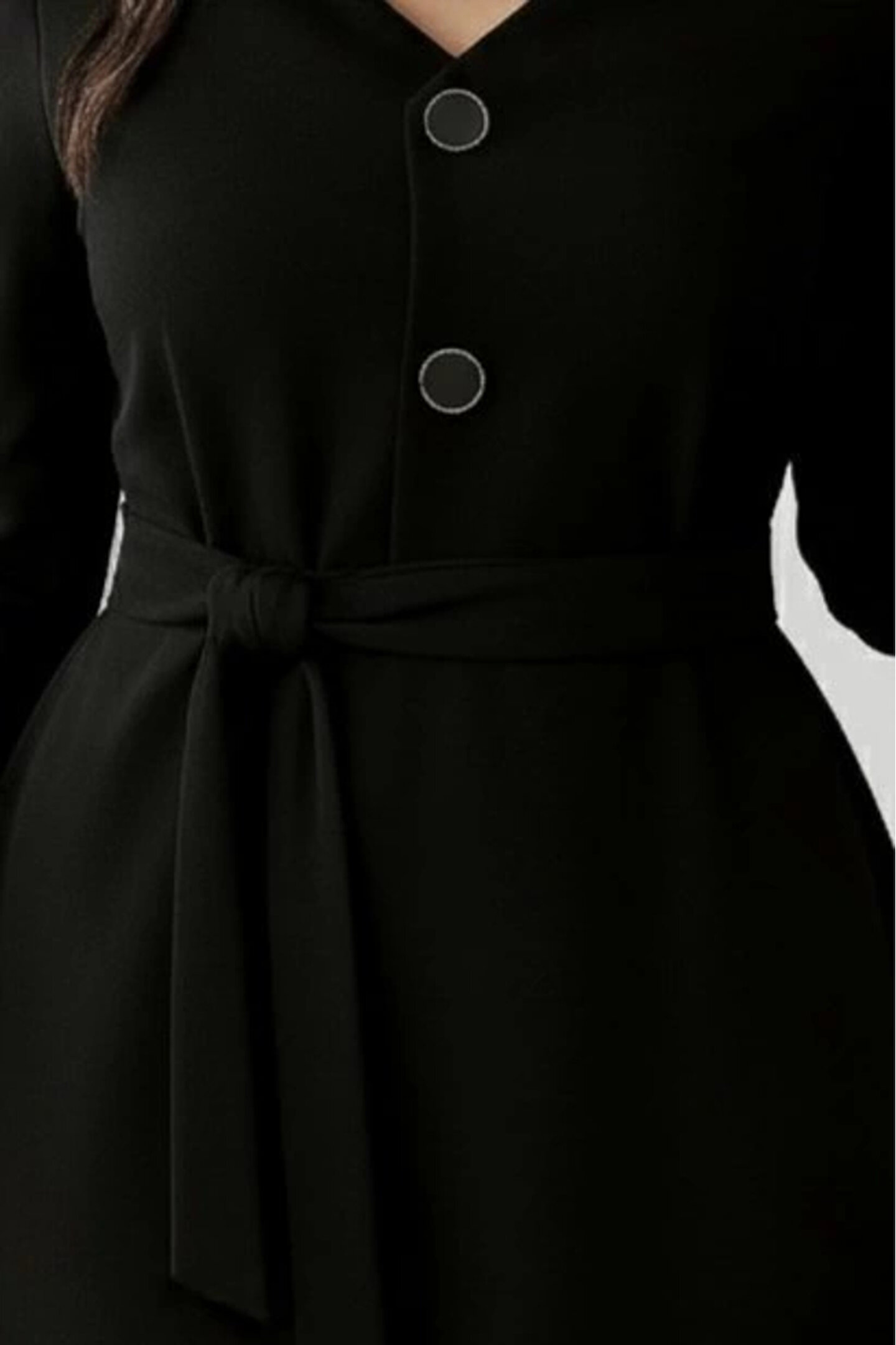 BEFAON MDB Kadın Uzun Kollu Düğme Detaylı Kendinden Kemerli Ithal Krep Elbise