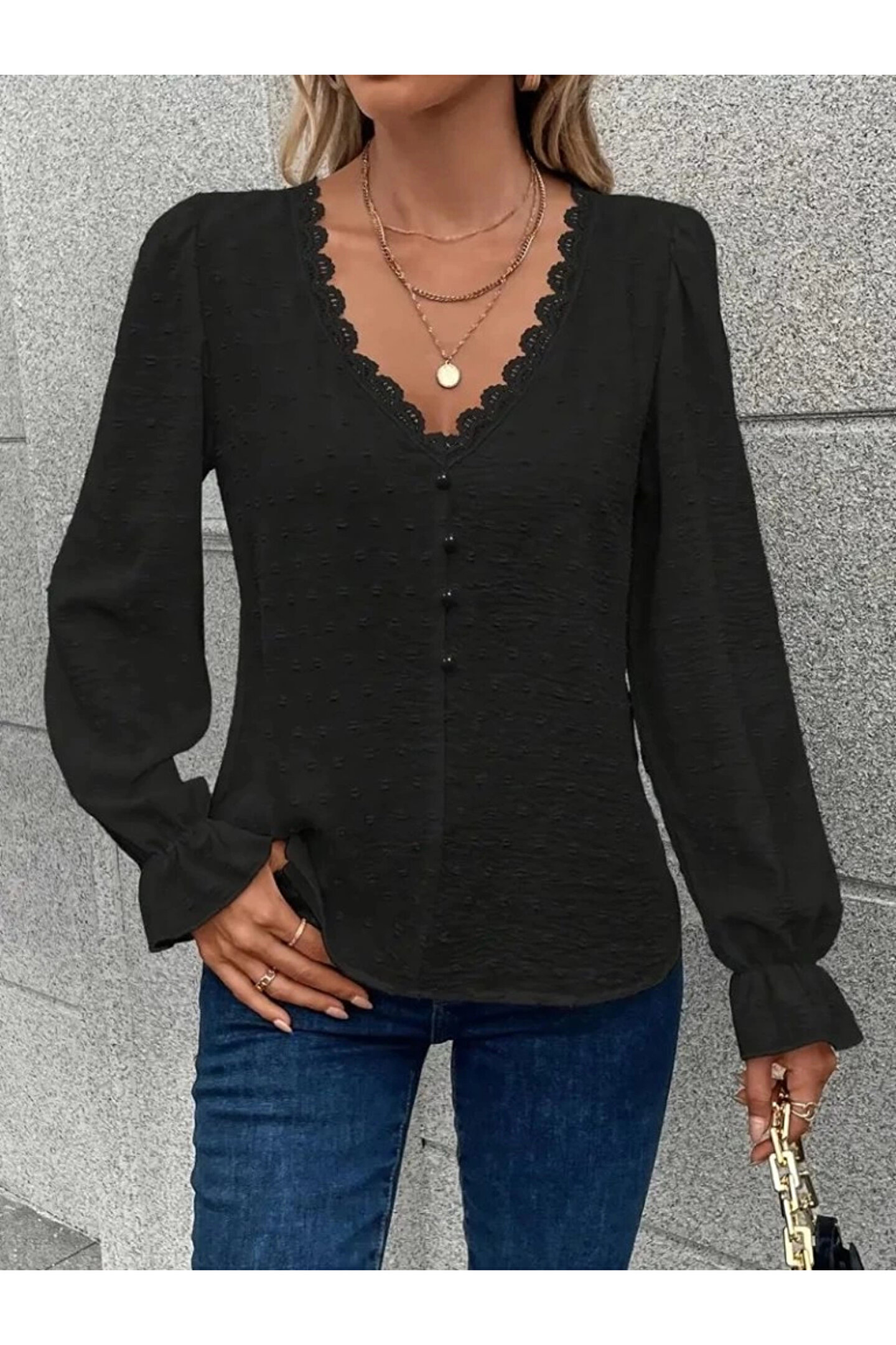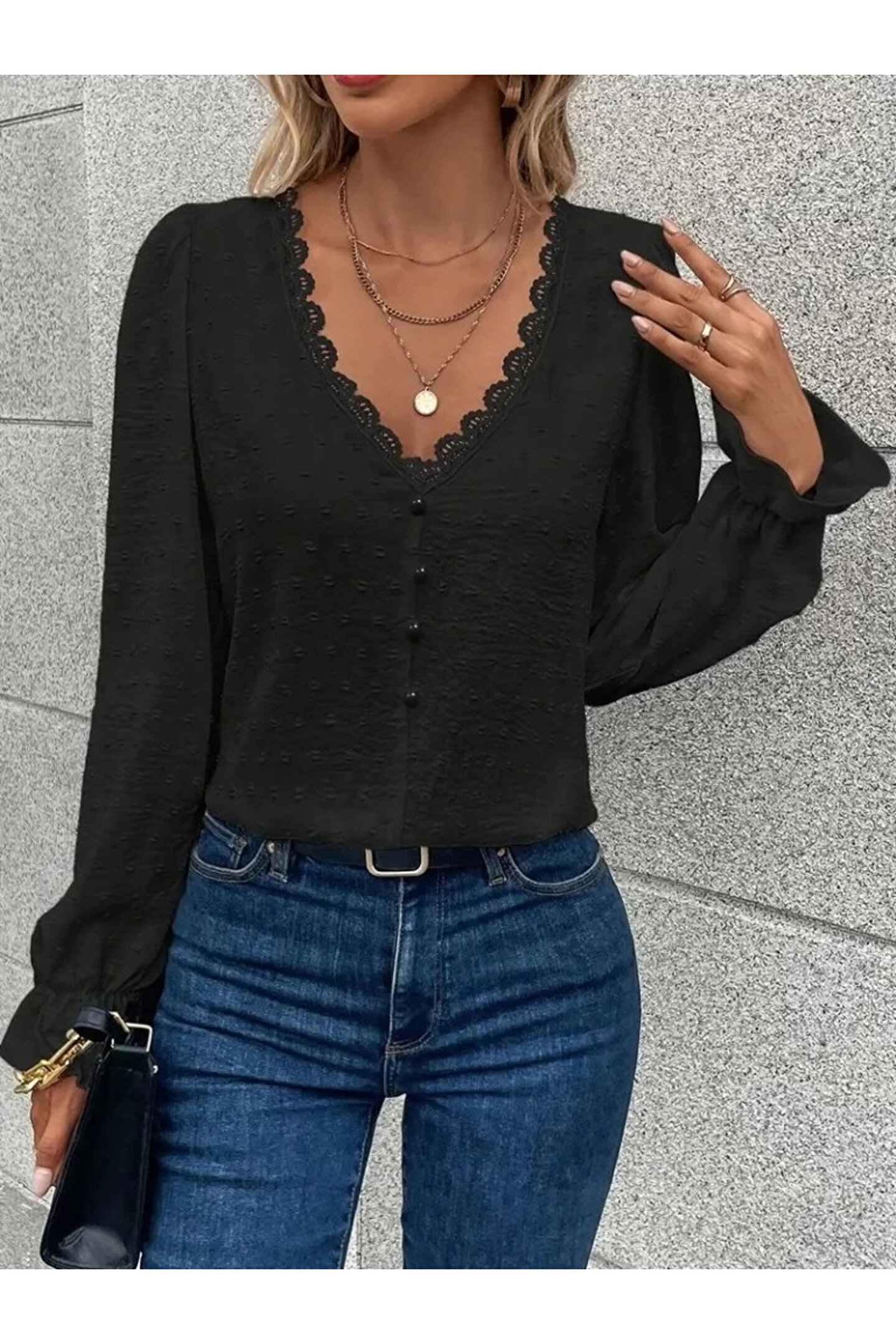 Kadın Uzun Kollu V Yakalı önden Düğmeli Bluz