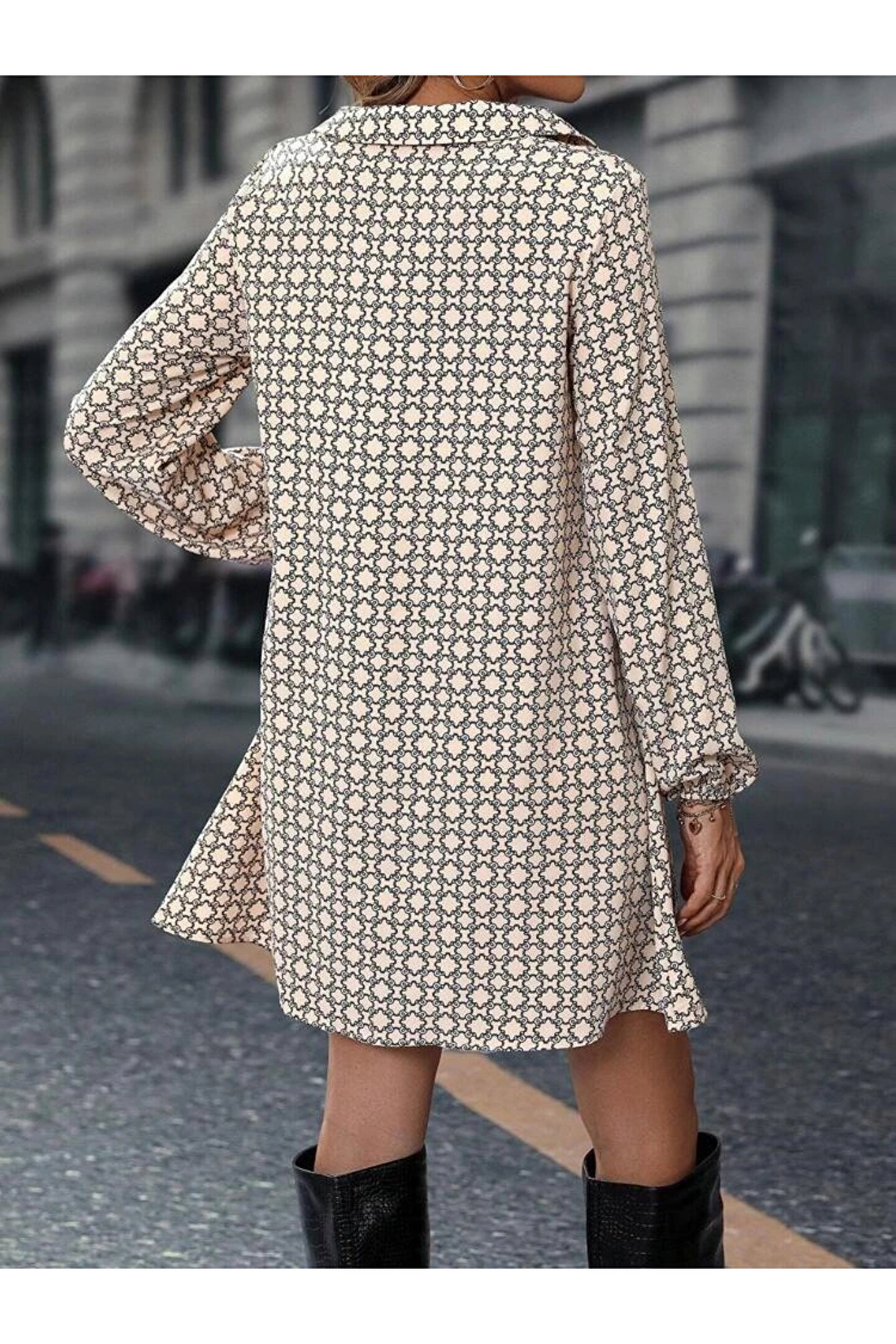 BEFAON MDB Kadın Uzun Kollu Yakalı Desenli Mini Modal Elbise