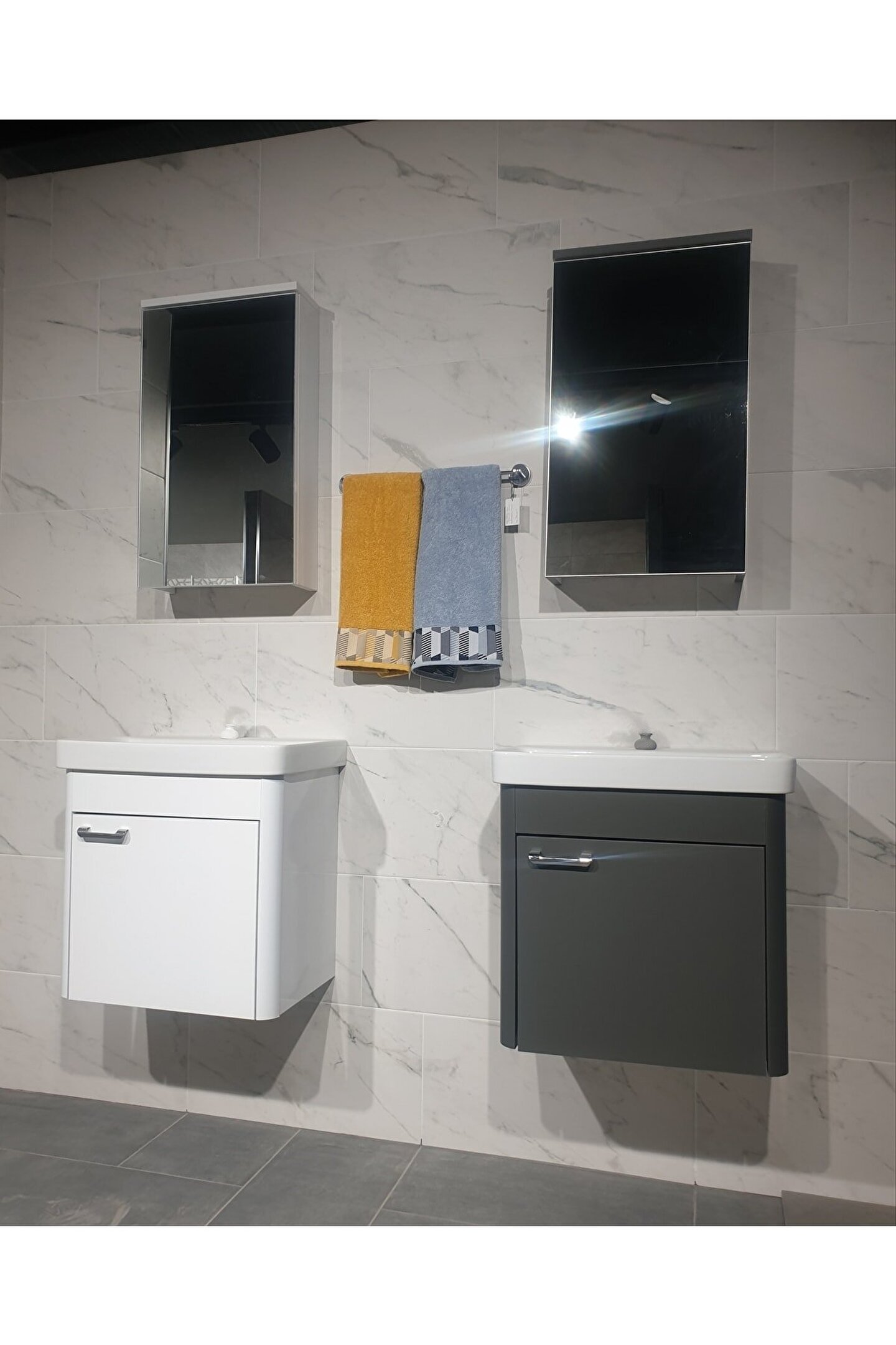 Aynalı tasarımı sayesinde hem kullanışlı hem de şık bir banyo deneyimi sunar; Set halinde gelen bu banyo dolap takımı, banyonuzda ihtiyacınız olan tüm parçaları tek bir pakette toplar; 55 cm genişliğindeki kompakt boyutu, dar alanlar için idealdir ve banyonuzda yerden tasarruf etmenizi sağlar;