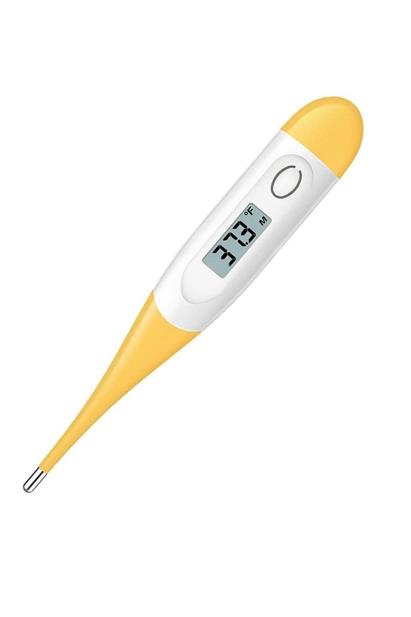 Bebeğinizin Sağlığı İçin Güvenilir Takip: Hassas Dijital Çubuk Ateş Ölçer Ebeveynler için en büyük öncelik, bebeklerinin sağlığı ve huzurudur.; Özellikle hastalık dönemlerinde doğru ve hızlı ateş ölçümü hayati önem taşır.; Sarı ve beyaz renkli bu dijital termometre, bebeğinizin ateşini en hassas şekilde takip etmeniz için tasarlanmıştır.; Görsellerde de görüldüğü gibi, bebeğiniz mışıl mışıl uyurken bile onu rahatsız etmeden, konforlu bir şekilde koltuk altı ateş ölçümü yapabilirsiniz.; Neden Bu Dijital Ateş Ölçeri Tercih Etmelisiniz? Hassas ve Doğru Sonuçlar: ±0,2°C gibi yüksek bir hassasiyet oranıyla çalışır.; 35-42°C aralığındaki vücut sıcaklığını hızlı ve doğru bir şekilde ölçerek size güvenilir sonuçlar sunar.; Bebekler İçin Tamamen Güvenli: Eski tip termometrelerin aksine cıva içermez.; Kırılmaya dayanıklı özel uç yapısı sayesinde, hareketli bebeklerde ve çocuklarda bile güvenle kullanılabilir.; Kullanıcı Dostu Dijital Ekran: Kolay okunabilir geniş dijital ekranı (20x7mm) sayesinde, ölçüm sonucunu loş ışıkta bile net bir şekilde görebilirsiniz.; Akıllı Özellikler: Ölçüm tamamlandığında sesli alarm ile sizi uyarır.; Hafıza fonksiyonu sayesinde bir önceki ölçümü kaydederek ateş takibini kolaylaştırır.; Enerji tasarrufu için otomatik kapanma özelliğine sahiptir.; Ergonomik ve Hafif: Sadece 9.60 gr ağırlığı ve ideal boyutuyla (120mm) tutuşu kolaydır, yanınızda taşımanız için pratiktir.; Bebeğinizin ateşini güvenle ve hızla ölçmek, onun konforunu bozmadan sağlığını takip etmek için bu dijital çubuk termometre, her evin ecza dolabında olması gereken bir yardımcıdır.;