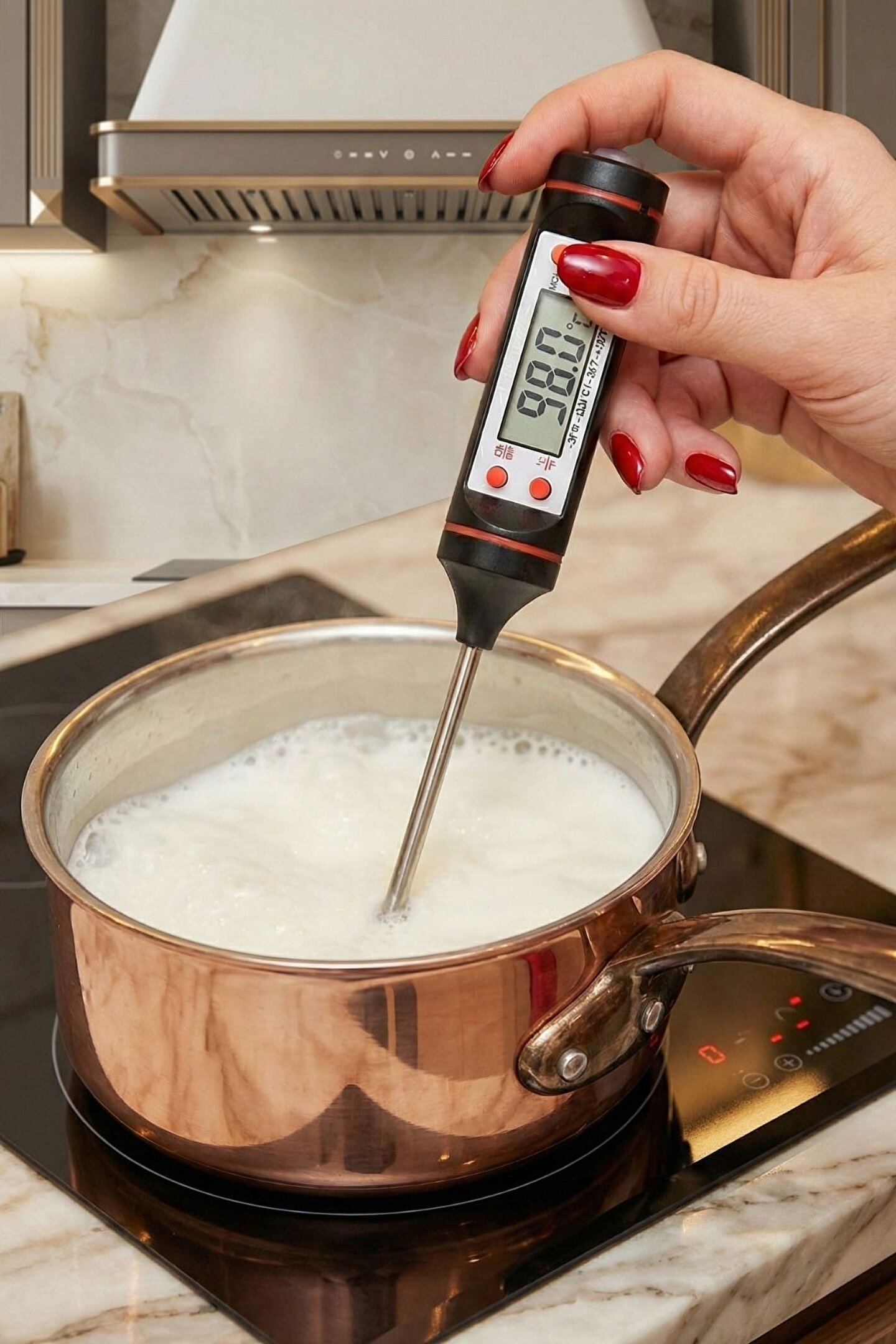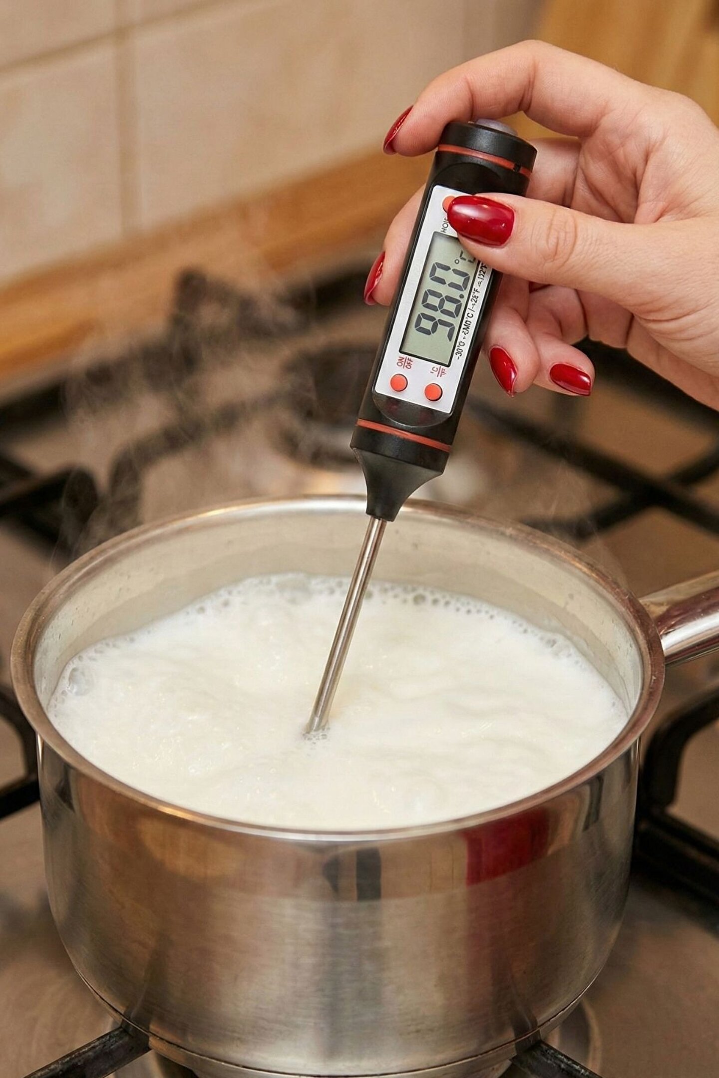 Mutfakta Mükemmelliğin Anahtarı: Hassas Dijital Gıda Termometresi Yemeklerinizin lezzetini ve kıvamını şansa bırakmayın! Bu dijital gıda termometresi, saniyeler içinde sunduğu hızlı ve hassas ölçümlerle mutfaktaki en güvenilir yardımcınızdır Çok Yönlü Kullanım: Etlerinizin (bonfile, tavuk, balık) tam istediğiniz gibi pişmesini sağlar.; Ayrıca bebek maması, süt, kahve, sos, yoğurt mayalama, eritilmiş çikolata ve hatta banyo suyu sıcaklığını ölçmek için idealdir.; Hızlı ve Hassas: Gelişmiş sensörü sayesinde sıcaklık değişimlerini anında algılar ve net LCD ekranında gösterir.; Geniş Sıcaklık Aralığı: Dondurulmuş gıdalardan kaynar sıvılara kadar (-50°C ila +300°C arası) geniş bir yelpazede güvenle ölçüm yapabilirsiniz.; Kullanımı Kolay ve Hijyenik: Uzun paslanmaz çelik probu, ellerinizi ısıdan korurken hijyenik bir kullanım sunar.; °C ve °F arasında kolayca geçiş yapabilirsiniz.;