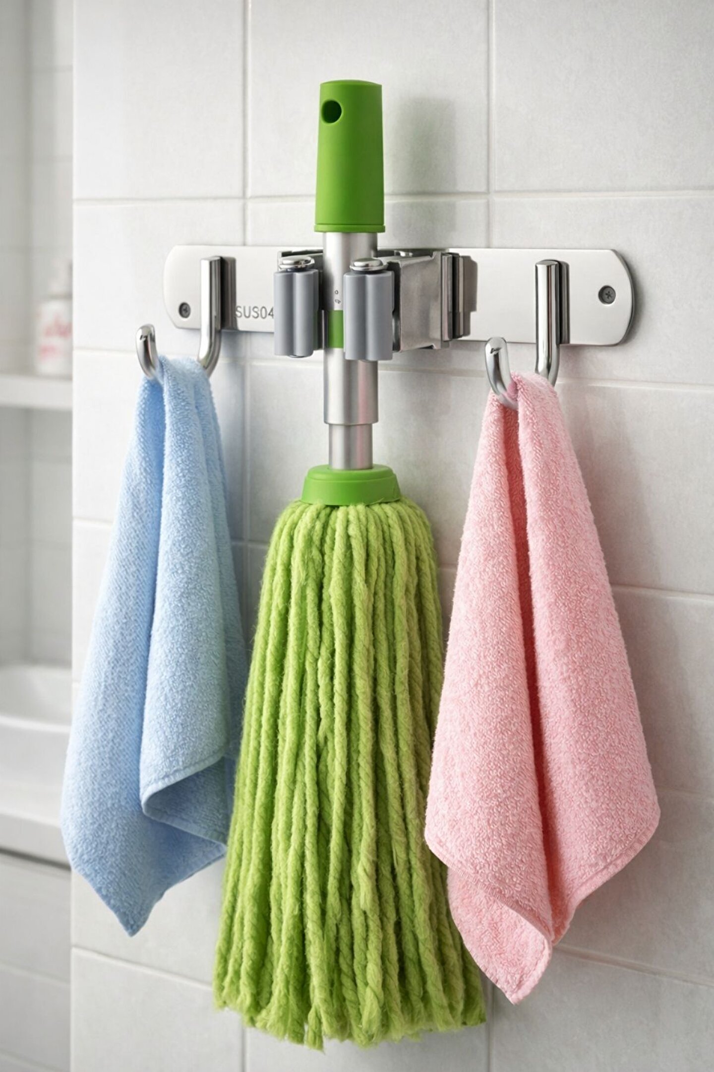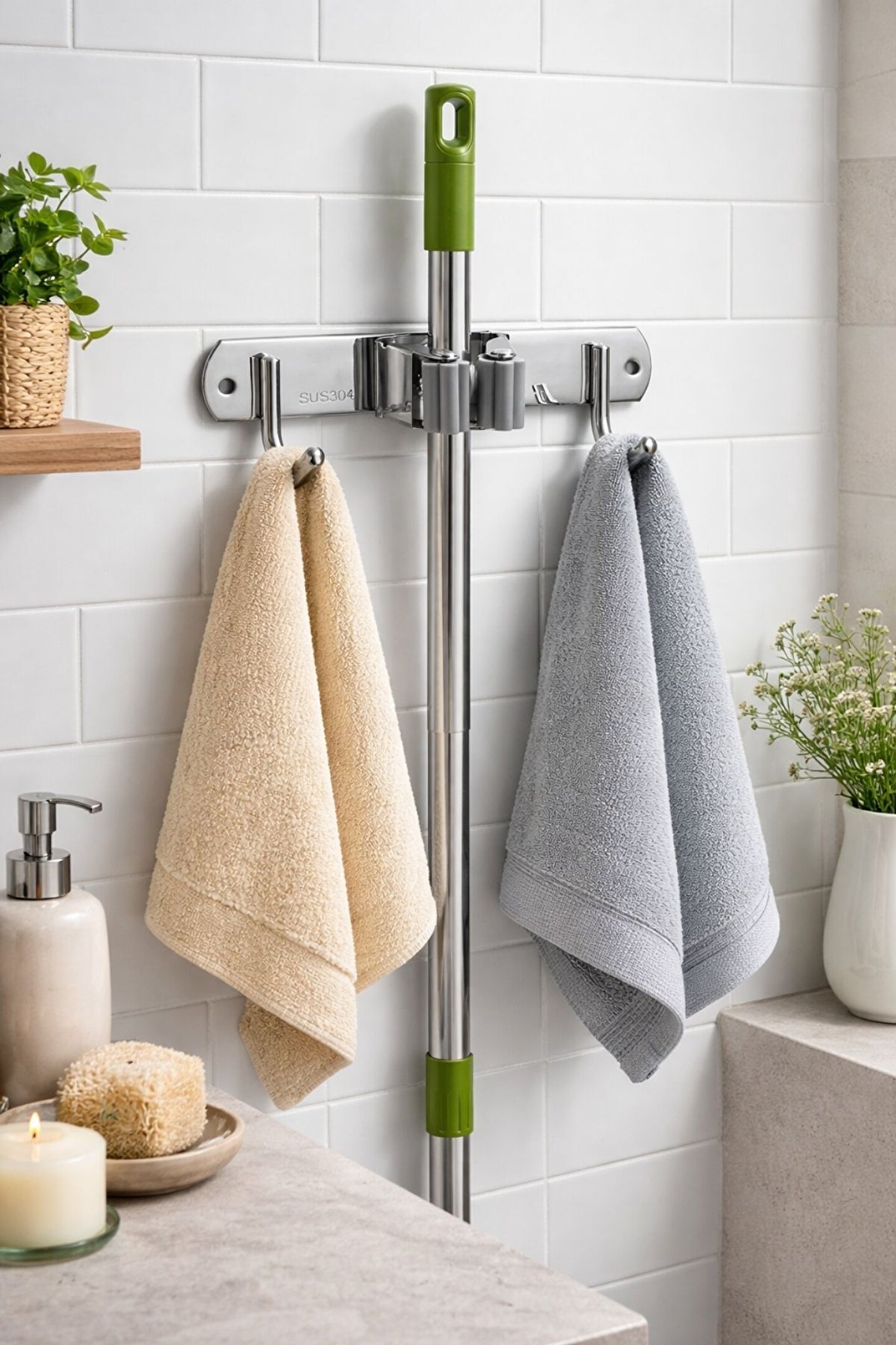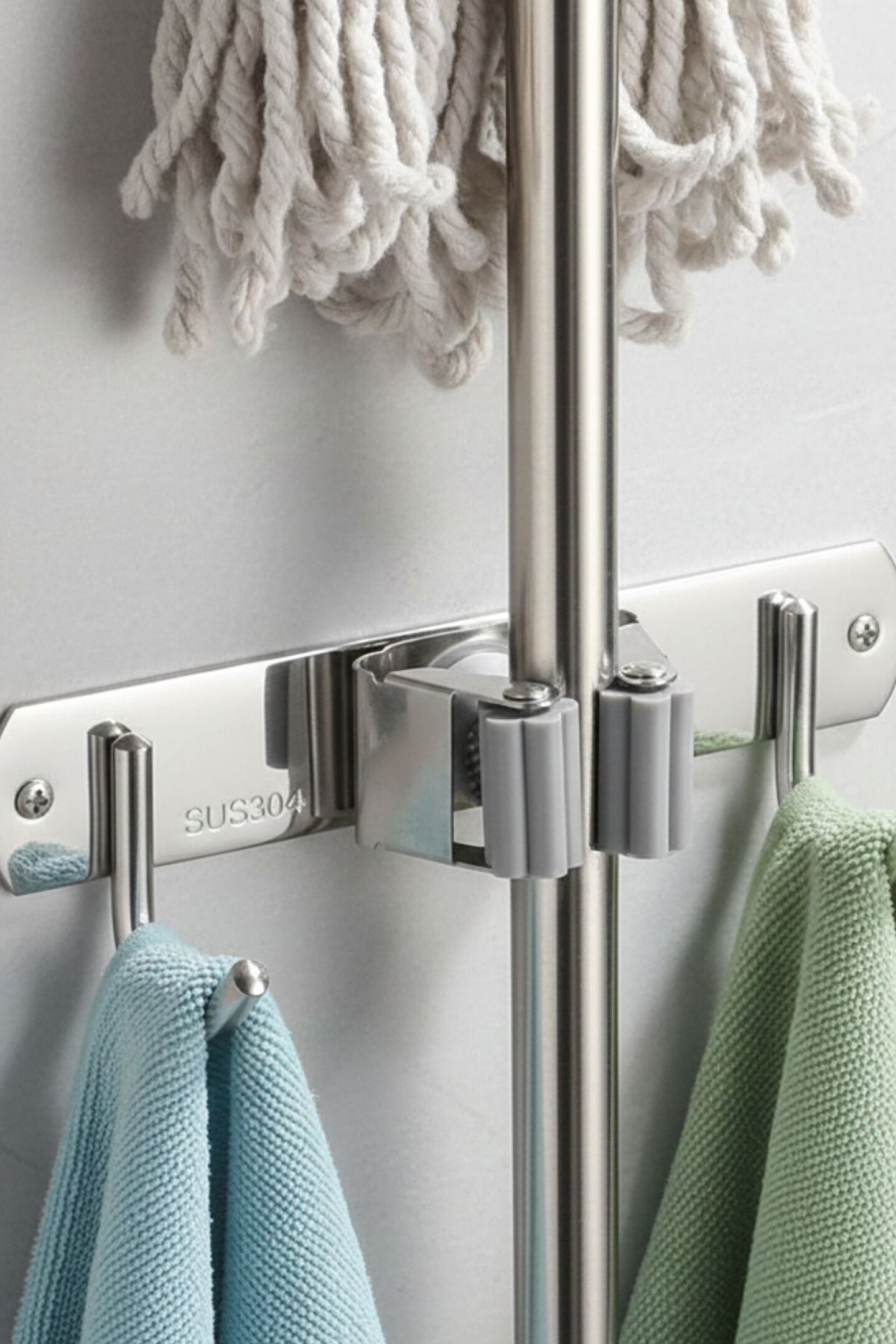 belivano Mop Bez Havlı Askısı Duvara Monte – Paslanmaz Çelik Temizlik Aparatı Askılığı 304 Çelik