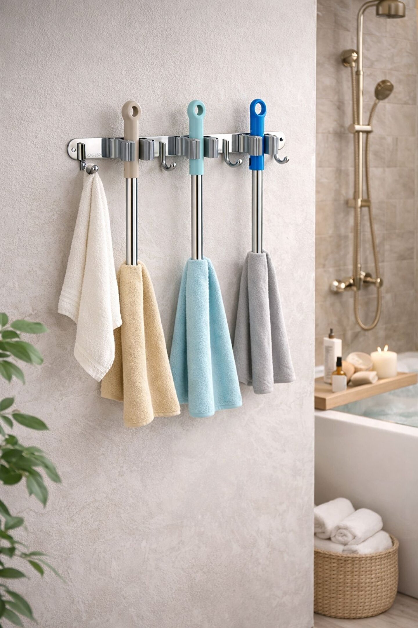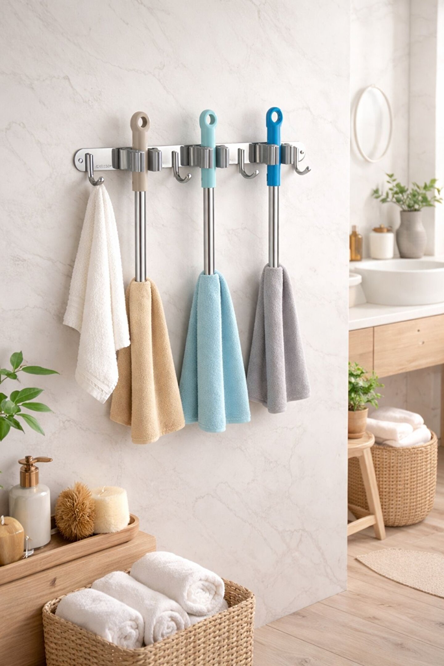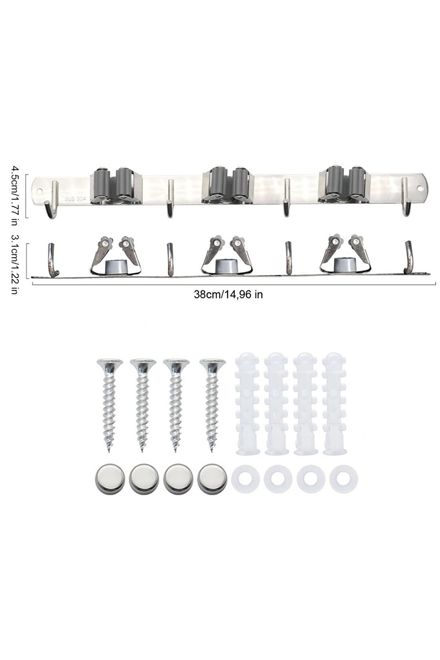 Paslanmaz çelik mop askısı, banyo mop askısı, süpürge askısı ve temizlik aparatı düzenleyici arayanlar için ideal bir çözümdür.; Duvara monte mop askısı sayesinde mop, süpürge ve temizlik bezleri düzenli, hijyenik ve yer kaplamadan saklanır.; Bu 304 paslanmaz çelik mop ve süpürge askısı, güçlü klipsli yapısı sayesinde mop sapını sıkıca kavrar ve kayma yapmaz.; Geçmeli mop askısı sistemi, mopların tek hamlede takılıp çıkarılmasını sağlar.