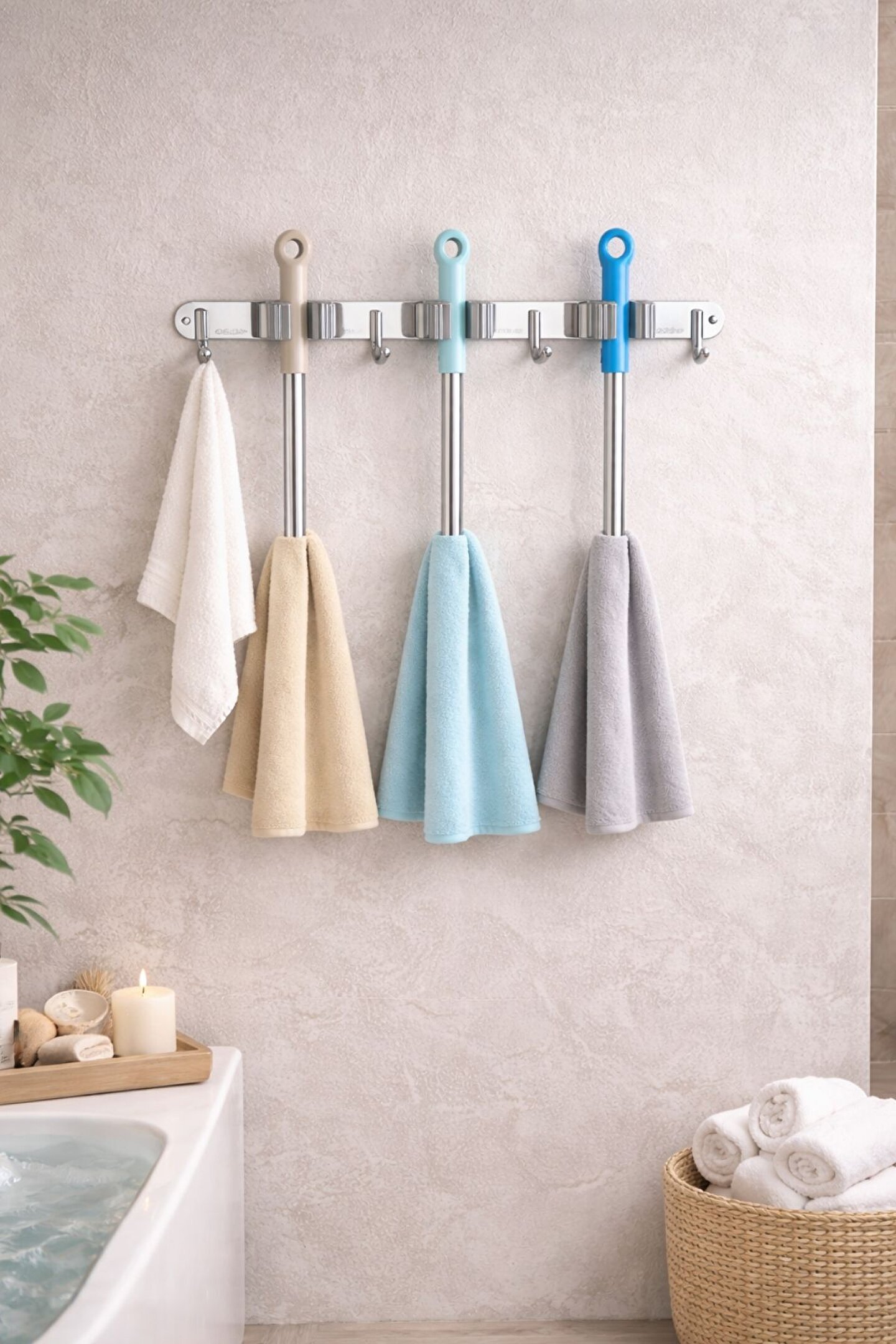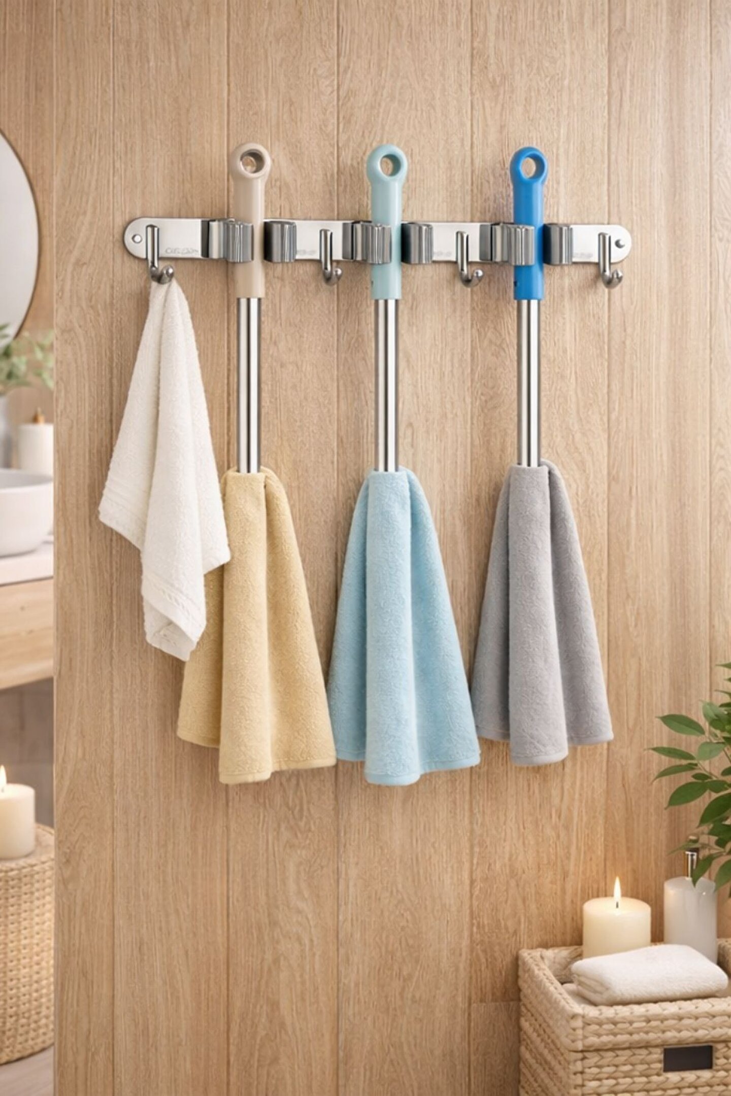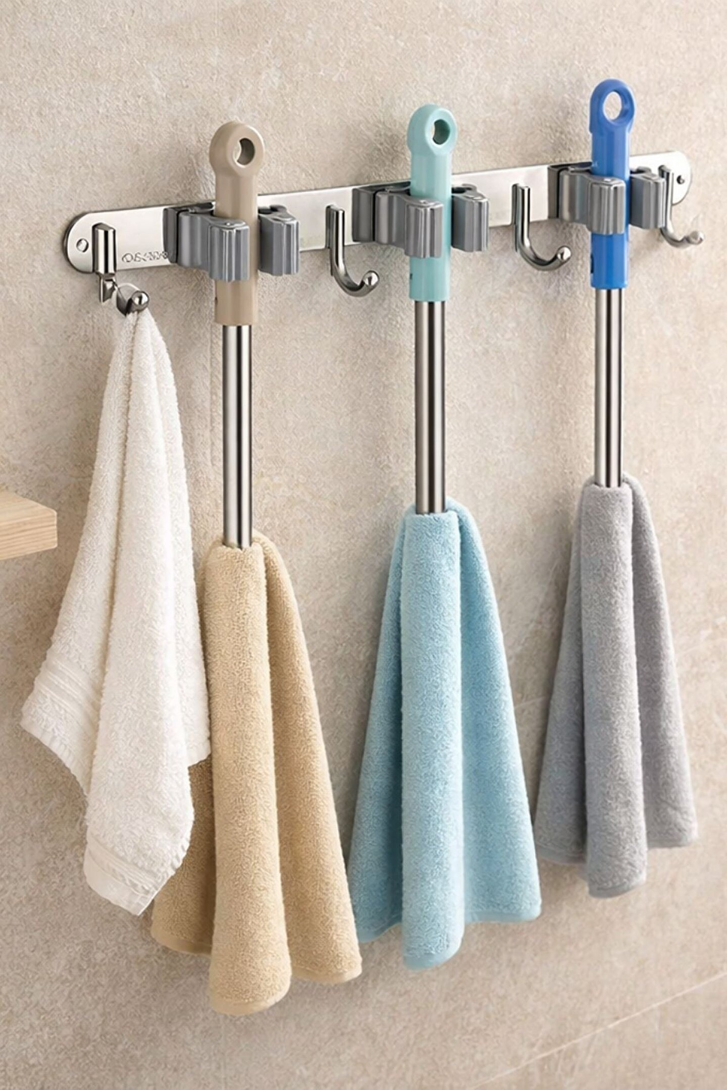 belivano Paslanmaz Çelik Mop Askısı | Duvara Monte Mop ve Bez Tutucu 304 Çelik