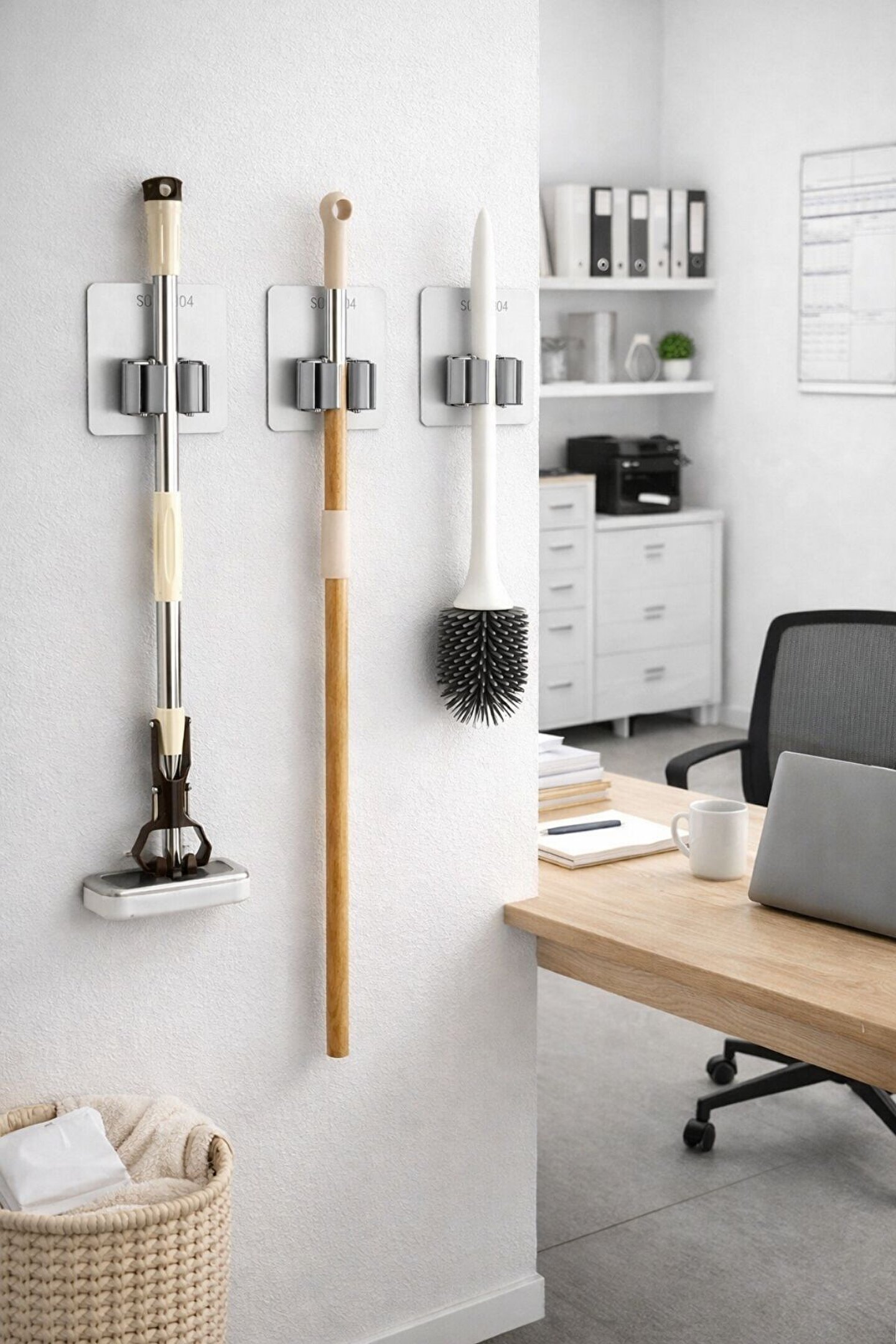 Tanım : Süpürge-Paspas Tutucu Maksimum Yük : 18kg Malzeme : 304 Paslanmaz Çelik Güçlü yük taşıyan, su geçirmez ve neme dayanıklı tasarım Kolay kurulum Pürüzsüz ve kuru bir yüzeye yapıştırın.; Klipsli Ağırlık : 45.39 Gr.; Ürün Ölçüleri : Yaklaşık 60 x 70 Mm Renk : Gümüş Sertifikalar : CE Belgeli Adet : 1 Model : BLV-23653 Paket İçeriği 1 x BLV-26353 Duvara Monte Süpürge-Paspas Tutucu 1 x Duvar Sabitleme Gönyesi 1 x Yapıştırıcı 1 x Çıkarma (Çince)