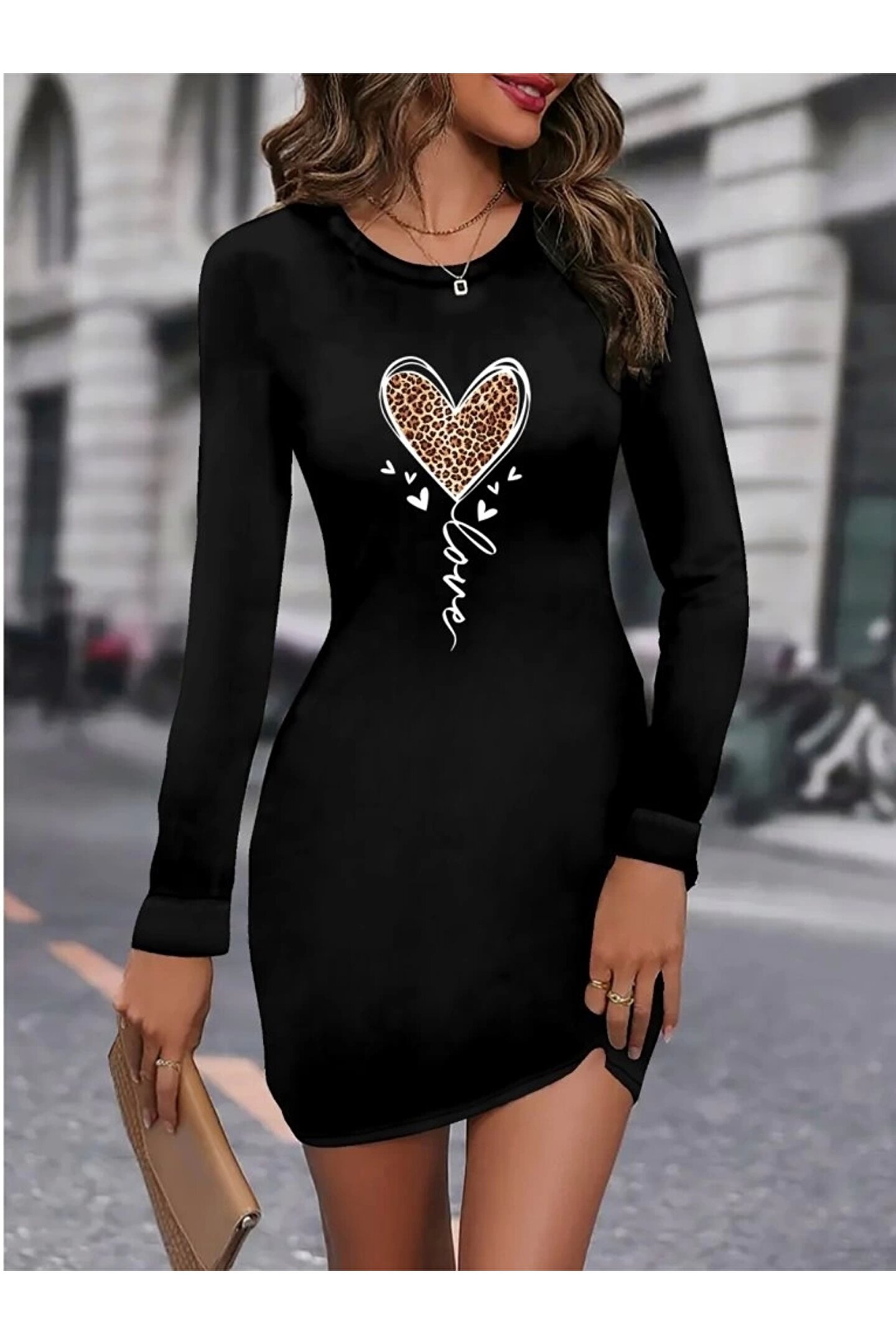 Kadın Uzun Kollu Bisiklet Yaka Kısa Viskon Iki Iplik Elbise