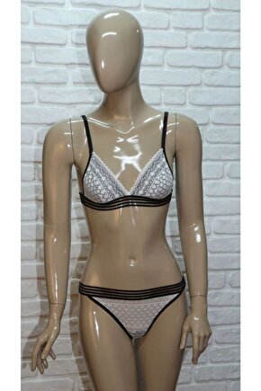 BESMOD Kadın Şerit Detaylı Lastikli Balensiz Dantel Fantazi Sütyen Külot Takım
