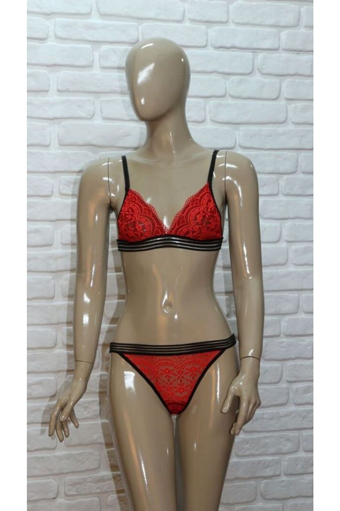 Kadın Şerit Detaylı Lastikli Balensiz Dantel Fantazi Sütyen Külot Takım