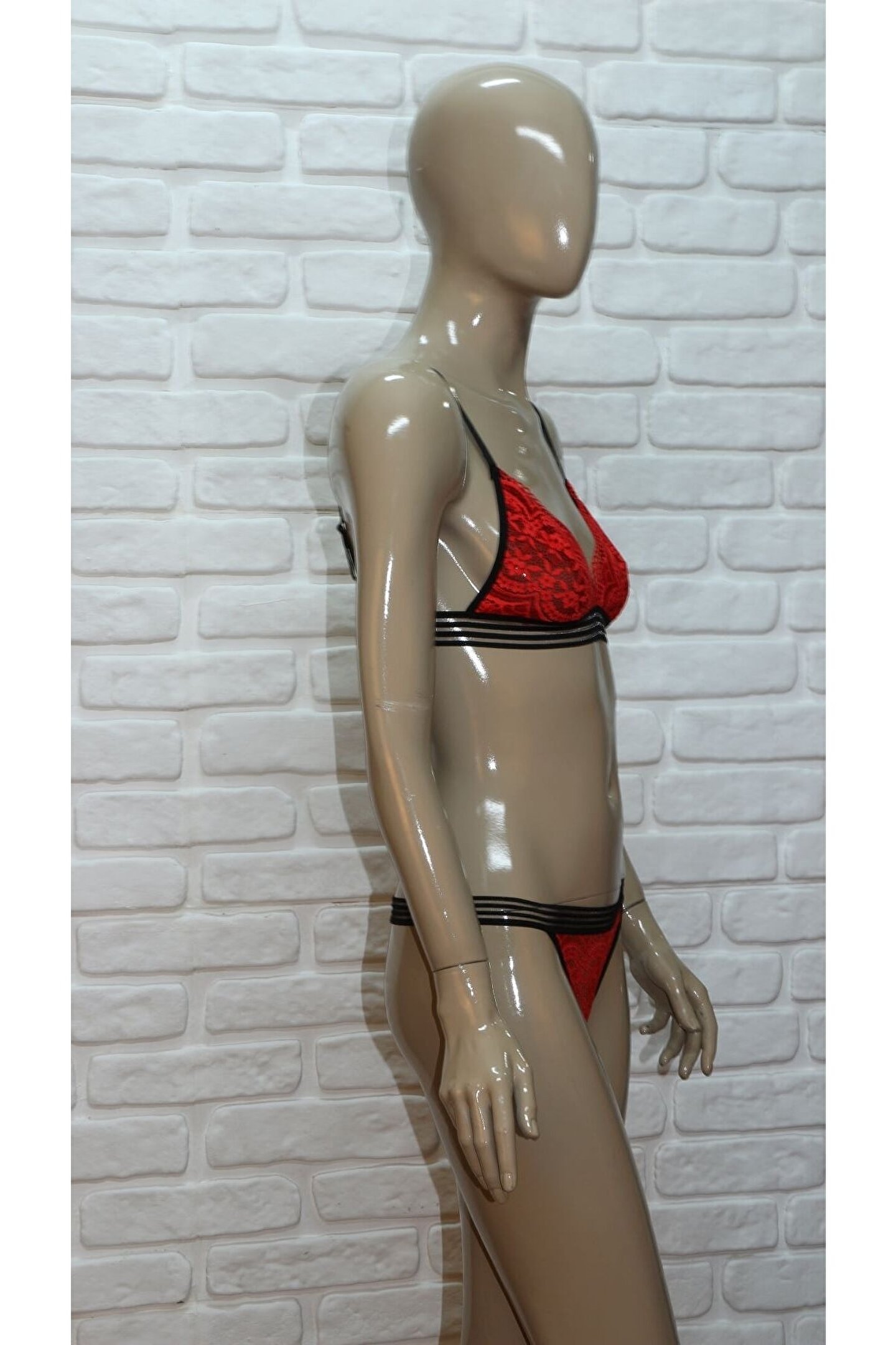 BESMOD Kadın Şerit Detaylı Lastikli Balensiz Dantel Fantazi Sütyen Külot Takım