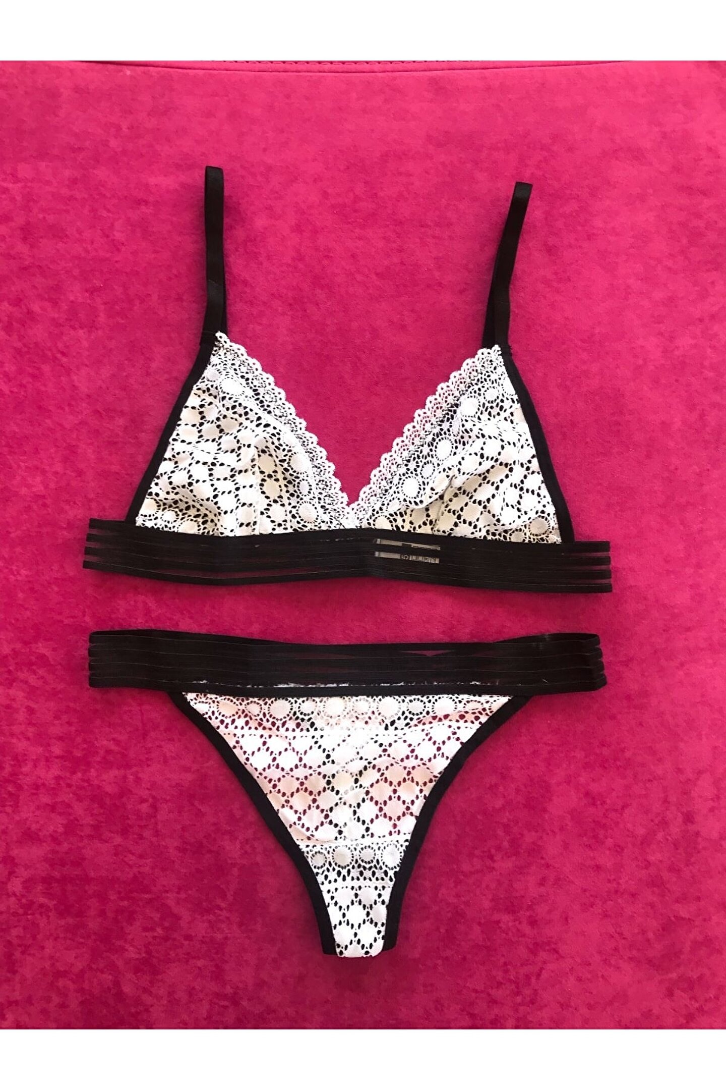 Kadın Şerit Detaylı Lastikli Balensiz Dantel Fantazi Sütyen Külot Takım
