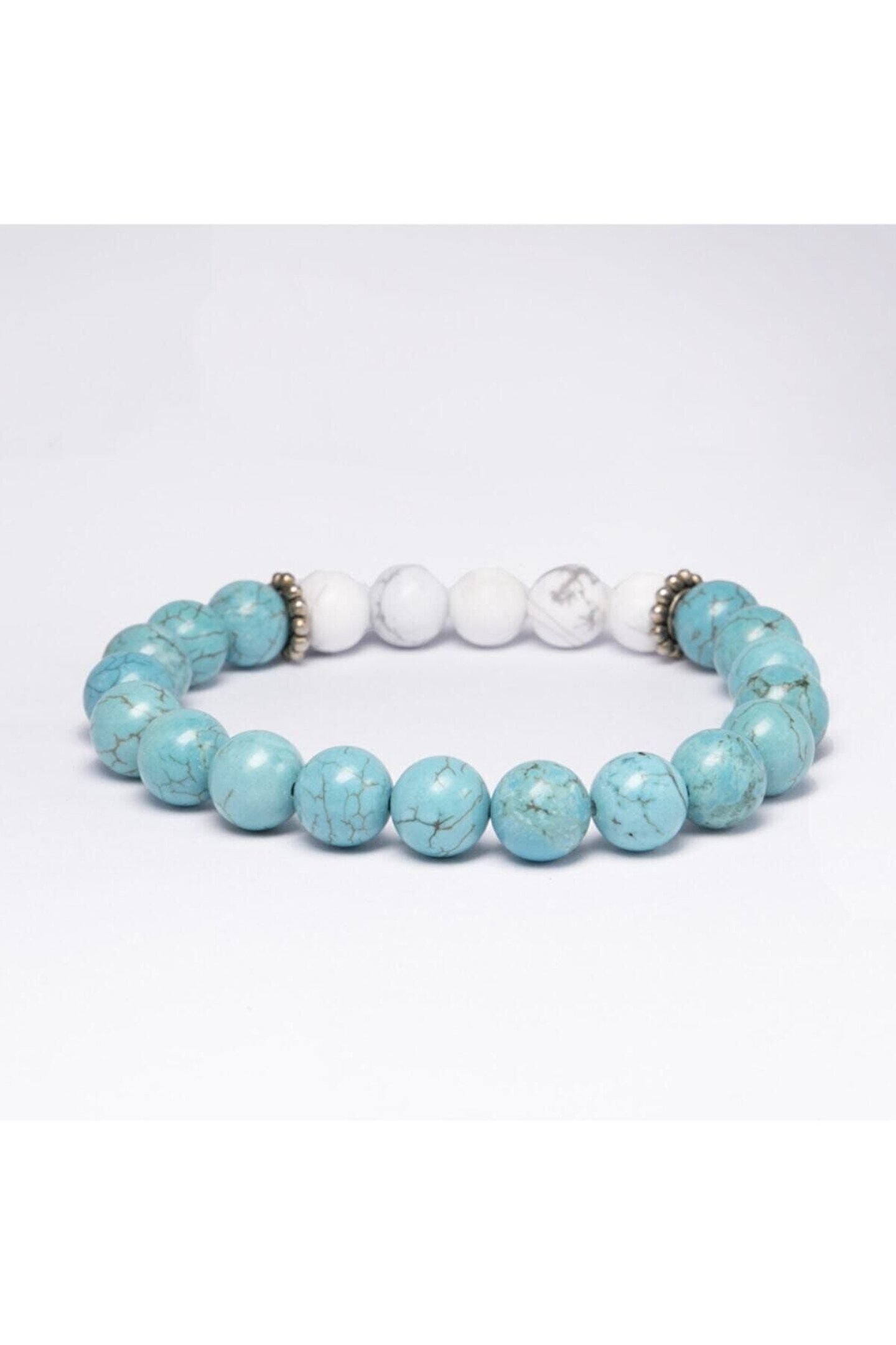 Doğal Turkuaz ve Havlit Taşları: Daha cazibeli ve daha mutlu olmayı vaat ediyor.; Turkuaz belki de insanlık tarihindeki en eski taş, kralların, şamanların tılsımıdır. Sanki cennetten yeryüzüne kaymış gibi, güçlü ve opak bir koruma taşıdır.; Masmavi turkuaza dokunuş kişiyi yatıştırır. Ruhsal dalgalanmaları önler. ; Cinsel cazibeyi ve dişil özellikleri arttırır. Cinsel sorunların çözümüne yardım eder. İnsanlarla iletişiminizi kuvvetlendirir. ; Stres giderici, mutluluk taşı olan HAVLİT sizi sakinleştirir, içinizdeki fırtınayı baskılar ve öfkenizi azaltır. ; Ilımlı ve dengeli düşünmeyi sağlar.; Havlit işyeri ve ofiste gerginliği giderirken, turkuaz bereketi getirir ; Turkuaz ve Havlit modelimiz ortalama 22-23 adet 8mm A kalite Gerçek Doğal Taştan oluşur.; Bileklikte kullanılan 925 ayar GÜMÜŞ ile doğal taşın etkisi arttırılmıştır. ; Bileklik dayanıklı elastik ip nedeniyle her bileğe uyumludur. Siparişiniz özel Lc19 kutusunda gönderilecektir. ;