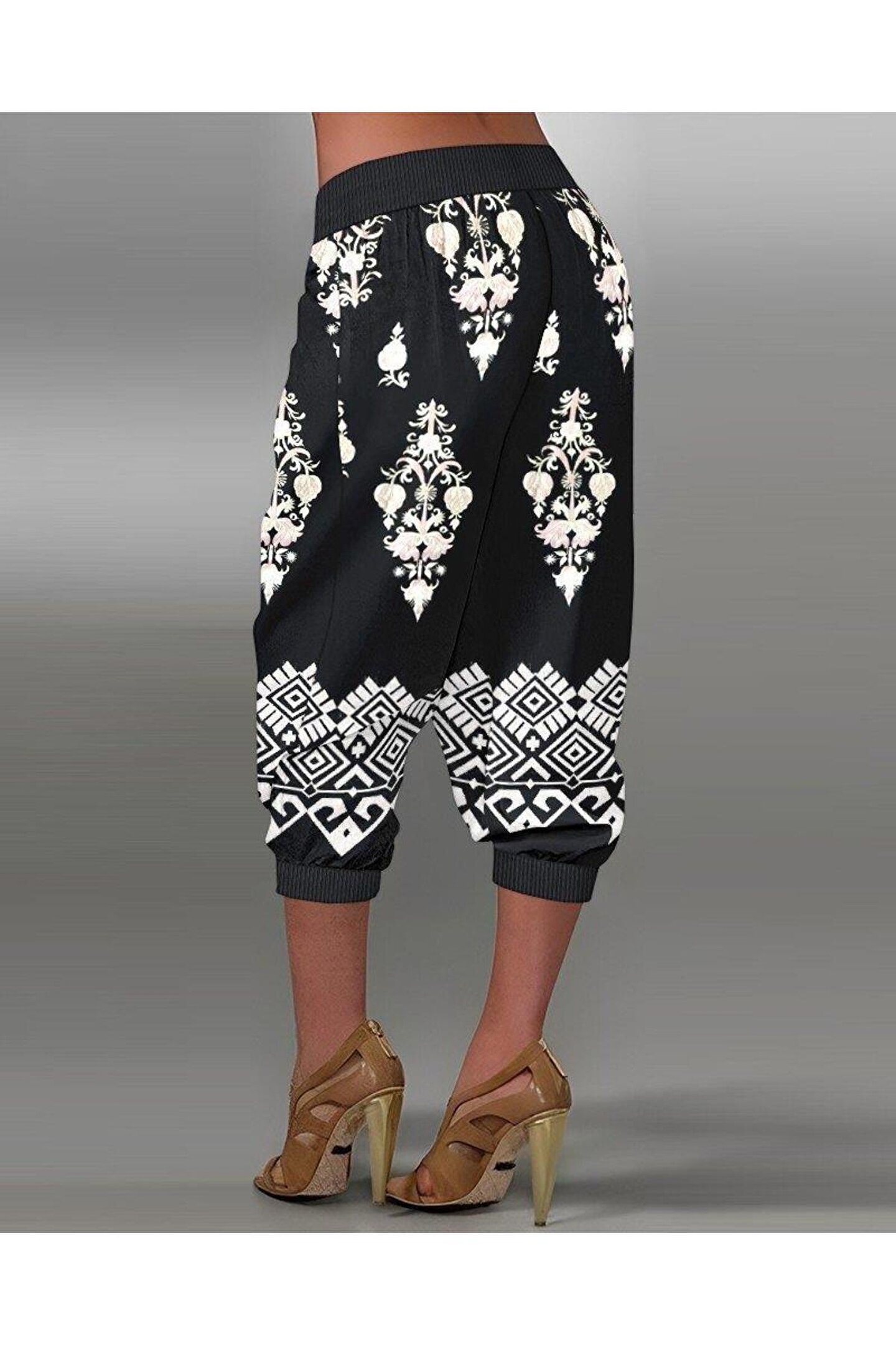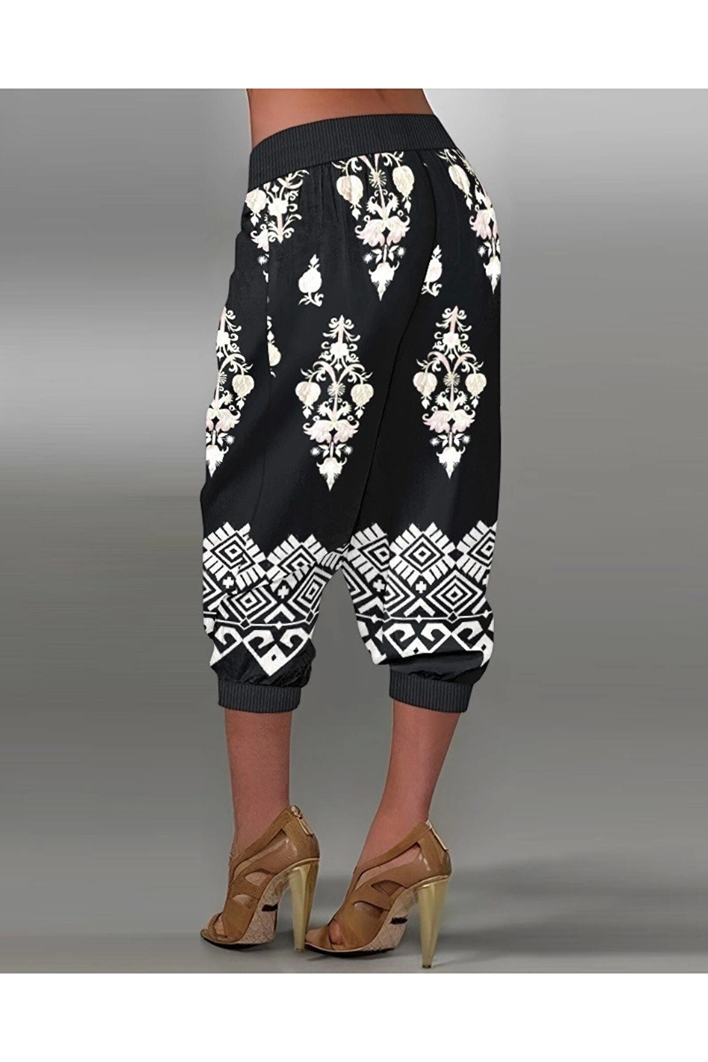 BETÜŞ WEAR Kadın Beli Lastikli Etnik Desenli Kapri Süprem Pantolon