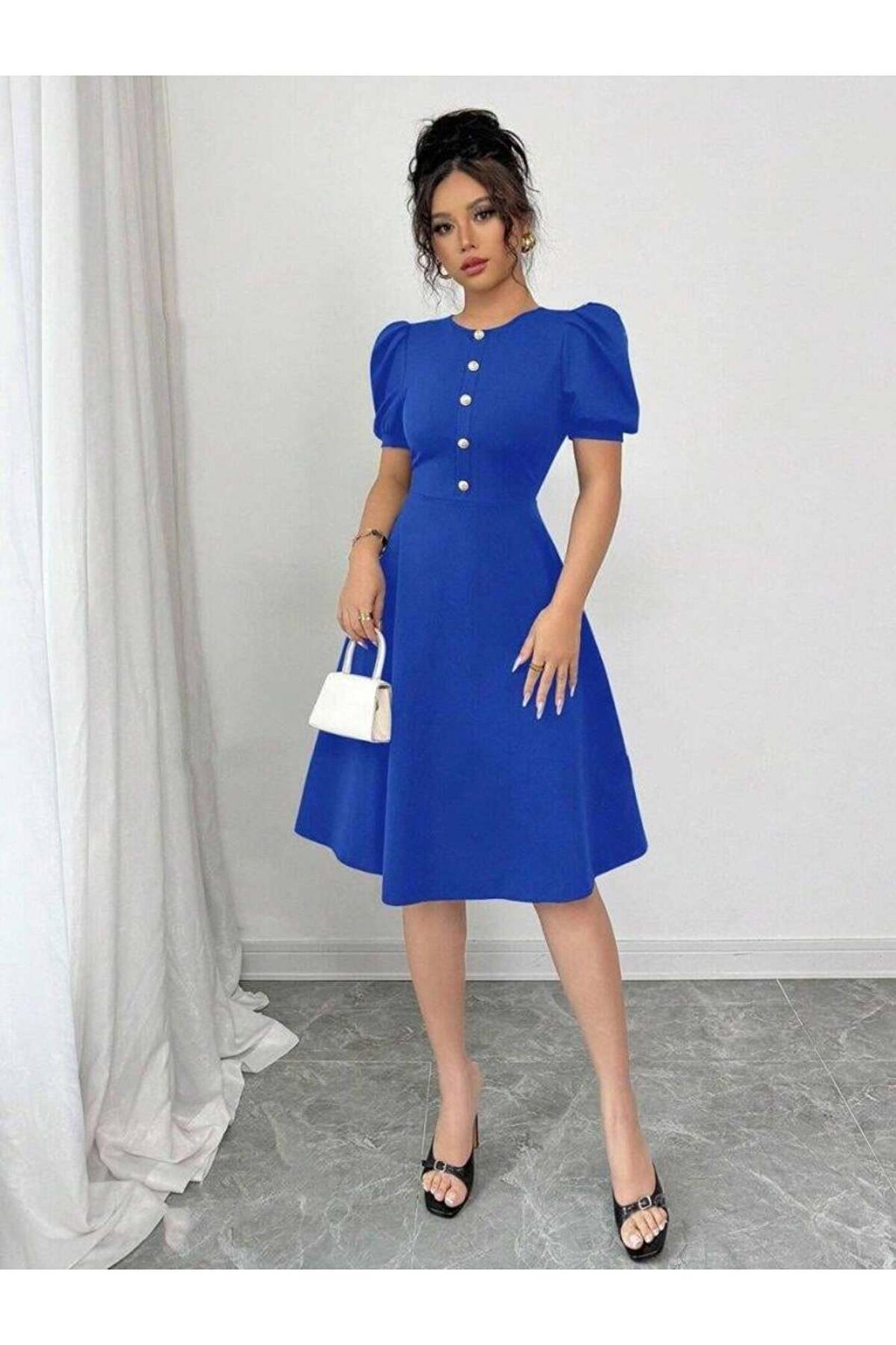 BETÜŞ WEAR Kadın Kısa Kollu Bisiklet Yaka önden Düğmeli Ithal Krep Elbise