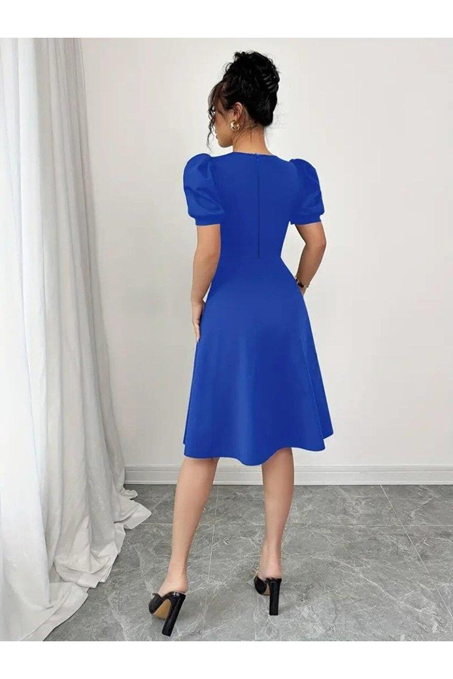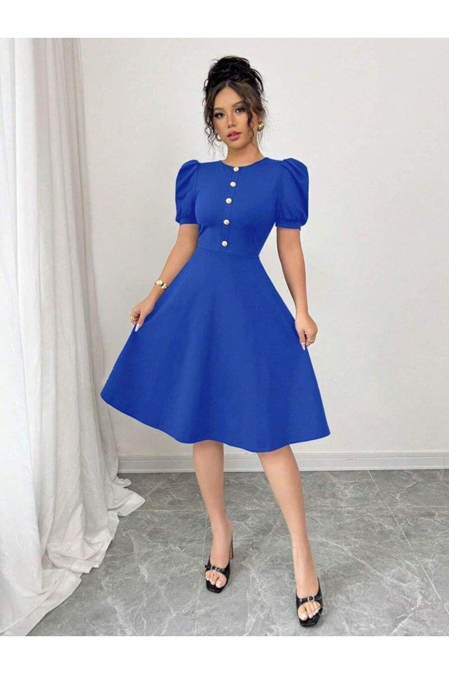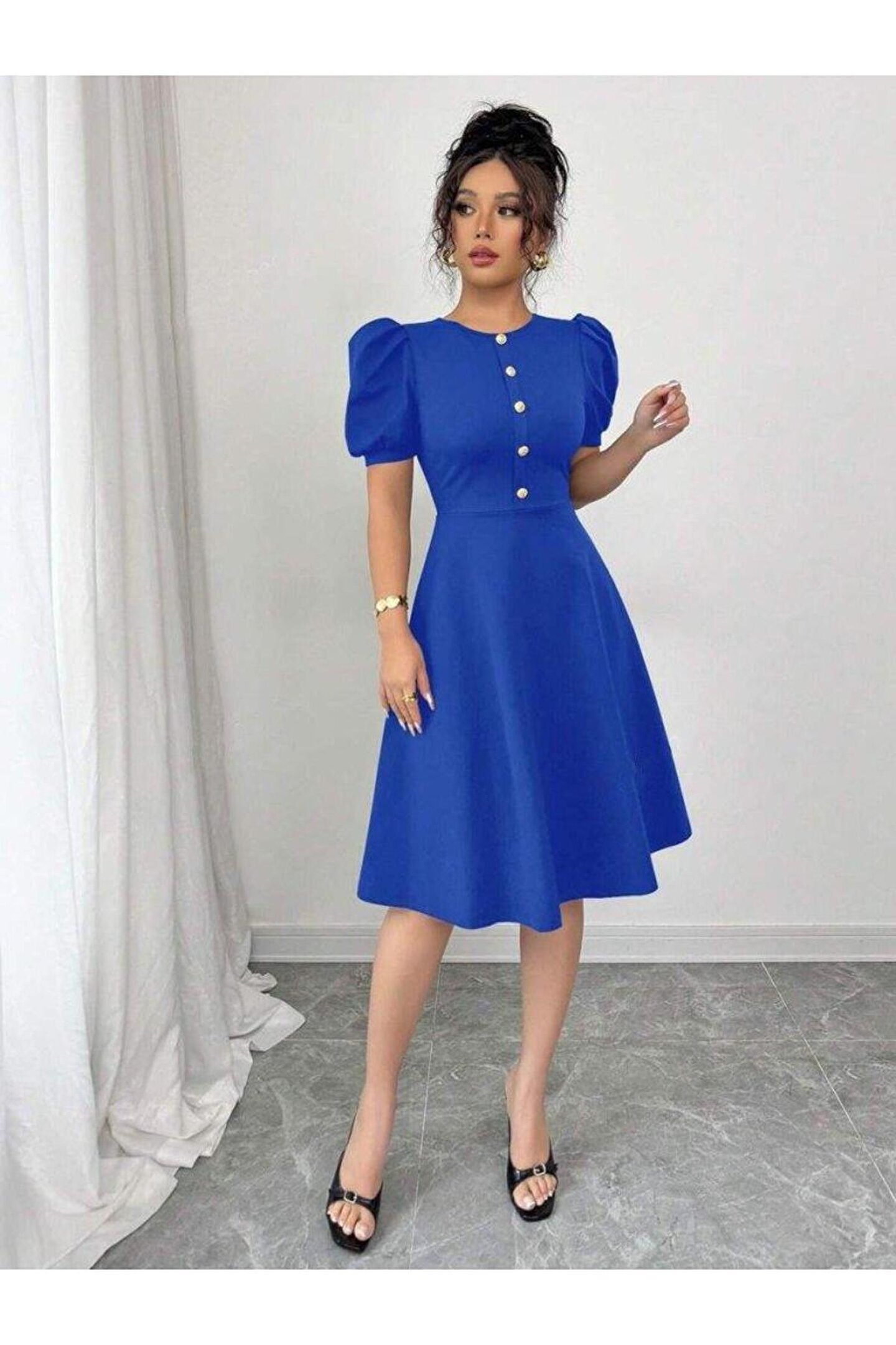 BETÜŞ WEAR Kadın Kısa Kollu Bisiklet Yaka önden Düğmeli Ithal Krep Elbise