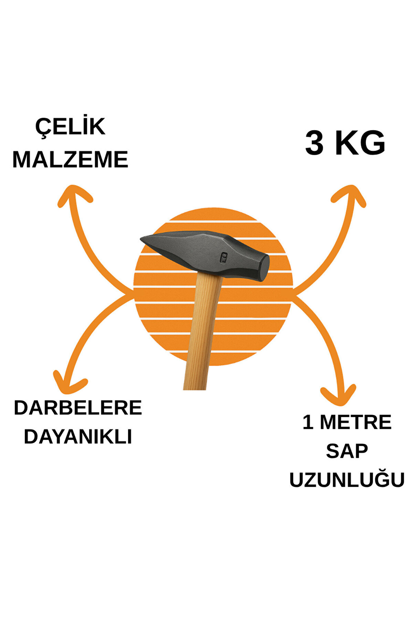 Dayanıklı: Isıl işlemle güçlendirilmiş dövme çelik başlık, ağır darbelerde dahi çatlama ve deformasyon riskini en aza indirir.; ; Çok Amaçlı: Yassı ve sivri uçlu çift taraflı tasarım, hem sert yüzey kırma hem de malzeme ezme ve şekil verme işlemlerinde profesyonel sonuç verir.; ; Profesyonel Kullanım: İnşaat, tadilat, şantiye ve ağır sanayi işlerinde yıkım ve kırma süreçlerinde yüksek sağlar.; ; Uyumlu: 3 cm çapında sap giriş bölümü sayesinde tüm standart balyoz sapları ile uyumludur, kolay ve güvenli montaj imkânı sunar.; ; Güvenilir: Denge merkezi optimize edilmiş tasarımı ile kullanım sırasında kontrollü ve güvenli darbe sağlar, iş kazası riskini azaltır.; ; Uzun Ömürlü: Korozyona karşı dayanıklı yüzey kaplaması sayesinde paslanmaya dirençli, uzun süreli kullanım için idealdir.; ; Endüstriyel Standart: Ürün, profesyonel kalite ve dayanım standartlarına uygun olarak üretilmiş olup ağır hizmet tipi kullanıma uygundur.