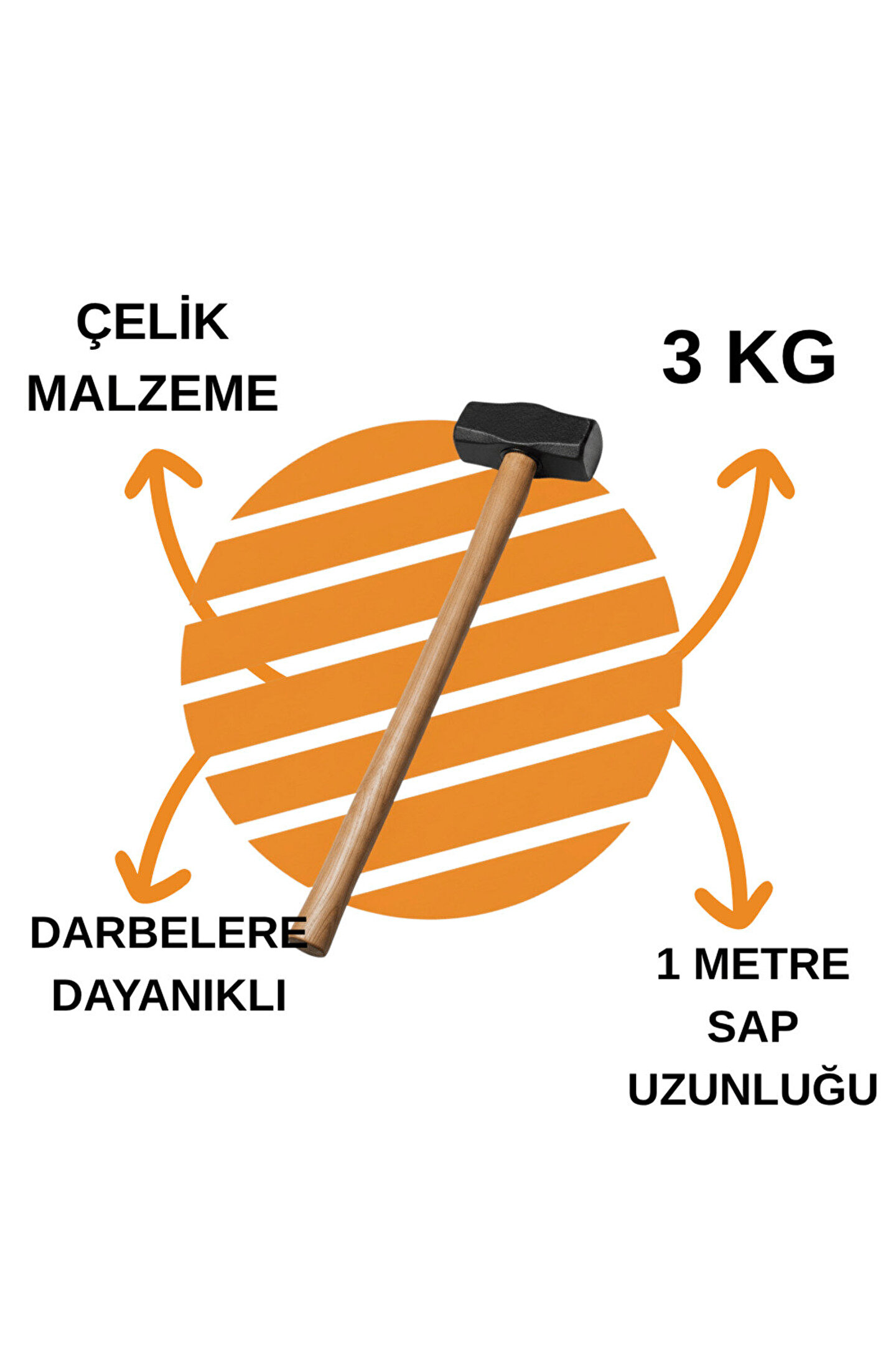 Dayanıklı: 3 KG ağırlığındaki bu balyoz başı, yüksek mukavemetli dövme çelikten üretilmiş olup ağır darbelere karşı maksimum direnç sağlar.; ; Çok Amaçlı: Beton, taş ve metal yüzeylerde güçlü kırma, yıkım ve şekil verme işlemleri için uygundur.; ; Profesyonel Kullanım: Ağır sanayi, büyük ölçekli inşaat projeleri, yol yapımı ve şantiye yıkım işlerinde üstün sunar.; ; Uyumlu: Standart ve kalınlaştırılmış balyoz saplarına uyumlu 3 cm çapında sap giriş bölümüyle sap değişimi kolay ve güvenlidir.; ; Güvenilir: Denge merkezi optimize edilmiştir; profesyonel işlerde kontrollü güç aktarımı sağlar ve iş güvenliğini artırır.; ; Uzun Ömürlü: Korozyona dayanıklı yüzey kaplaması ve güçlendirilmiş yapı sayesinde uzun yıllar performansını korur.; ; Endüstriyel Standart: Yoğun ve profesyonel kullanım için geliştirilmiş ağır hizmet tipi balyoz başı, endüstriyel kalite güvencesiyle üretilmiştir.