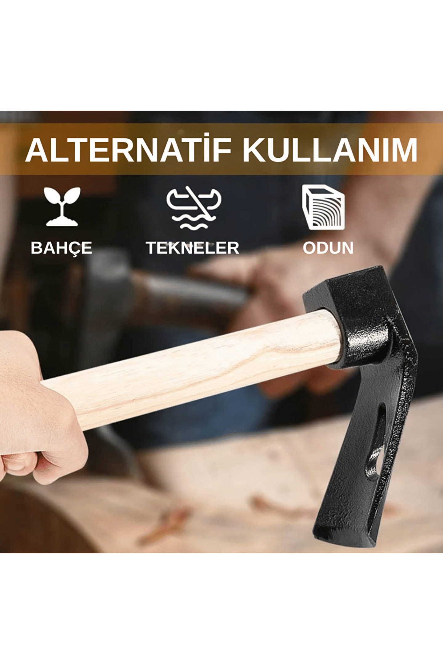 BEYLİNİ 500 gr Çelik Keser Ekonomik Dayanıklı Odun Bahçe Ot Çift Yönlü Ahşap Ergonomik Saplı Profesyonel