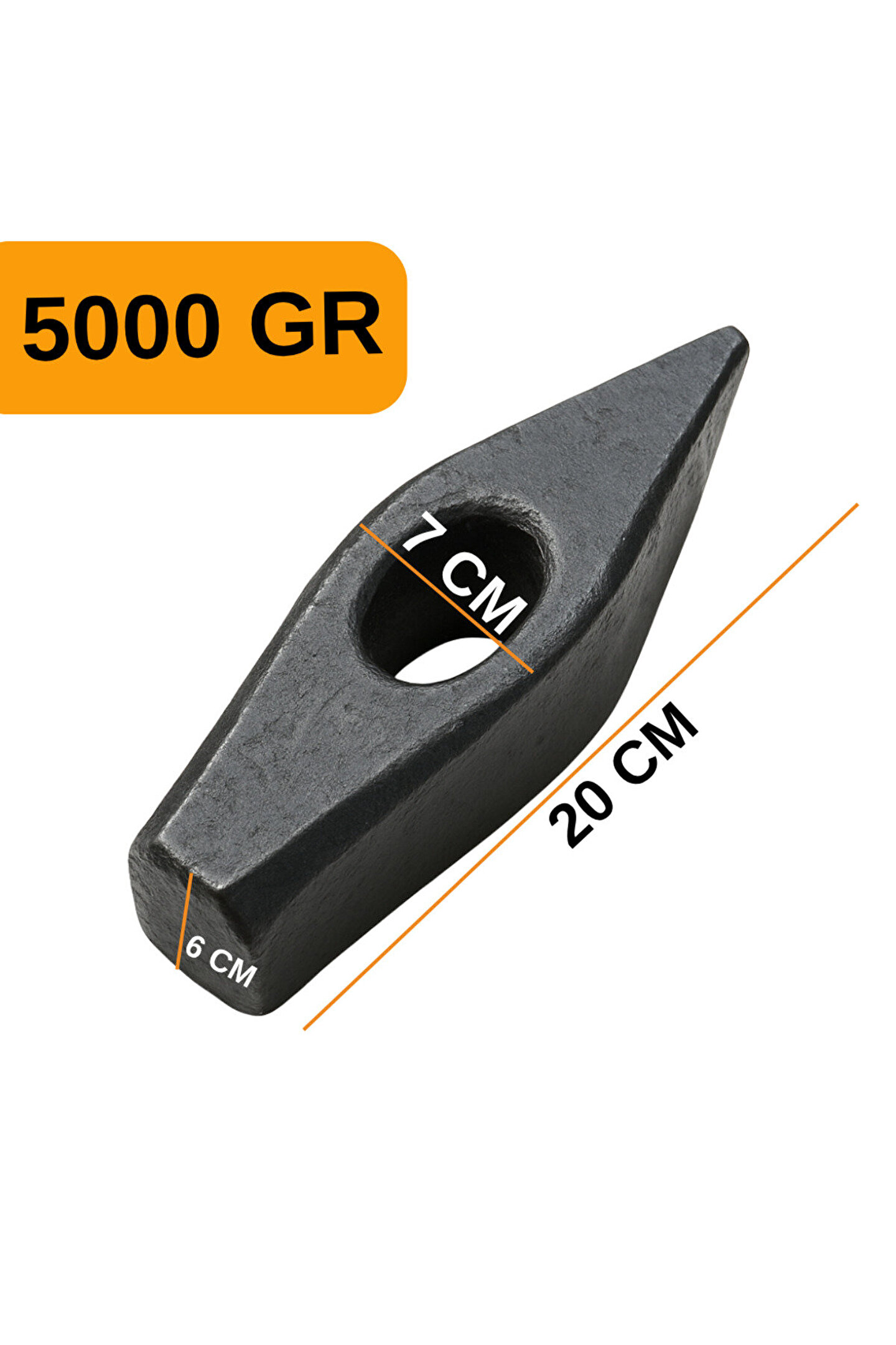 ; Dayanıklı: 5 KG ağırlığındaki bu balyoz başı, yüksek mukavemetli dövme çelikten üretilmiş olup ağır darbelere karşı maksimum direnç sağlar.; ; ; Çok Amaçlı: Yassı ve sivri uçlu çift taraflı tasarımıyla beton, taş ve metal yüzeylerde güçlü kırma, yıkım ve şekil verme işlemleri için uygundur.; ; ; Profesyonel Kullanım: Ağır sanayi, büyük ölçekli inşaat projeleri, yol yapımı ve şantiye yıkım işlerinde üstün sunar.; ; ; Uyumlu: Standart ve kalınlaştırılmış balyoz saplarına uyumlu 3 cm çapında sap giriş bölümüyle, sap değişimi kolay ve güvenlidir.; ; ; Güvenilir: Denge merkezi optimize edilmiştir; profesyonel işlerde kontrollü güç aktarımı sağlar, iş güvenliğini artırır.; ; ; Uzun Ömürlü: Korozyona dayanıklı yüzey kaplaması ve güçlendirilmiş yapı sayesinde uzun yıllar performansını korur.; ; ; Endüstriyel Standart: Yoğun ve profesyonel kullanım için geliştirilmiş, ağır hizmet tipi balyoz başı, endüstriyel kalite güvencesiyle üretilmiştir.