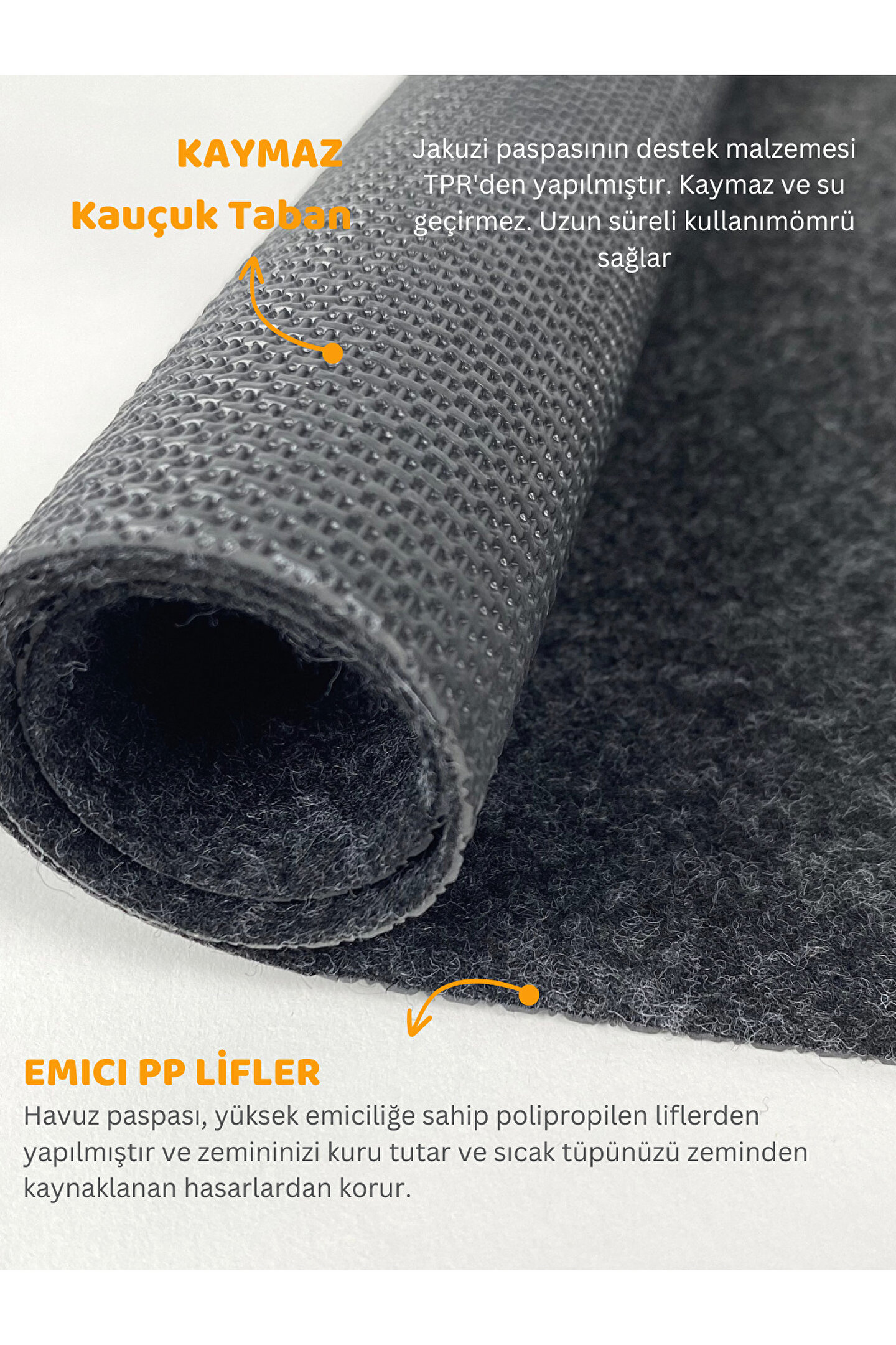 BEYLİNİ Havuz Altı Halısı Su Geçirmez Yıkanabilir Emici Dayanıklı Koruyucu Havuz Matı Antrasit (183x188)