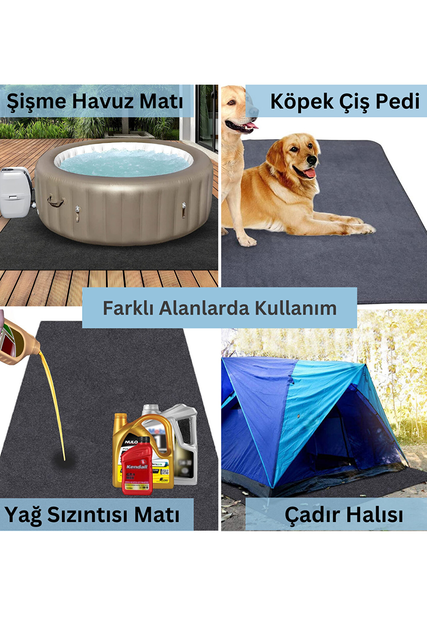 Yoga matı, Evcil Hayvan Alanı, Şişme Havuz Halısı, Yağ Sızıntısı Olabilecek Alanlarda da Kullanılabilir