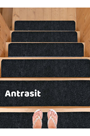 BEYLİNİ Merdiven Halısı Basamak Halısı Keçe Kaymaz Taban Yapışkanlı Halıfleks Antrasit 1li 20x75 Cm