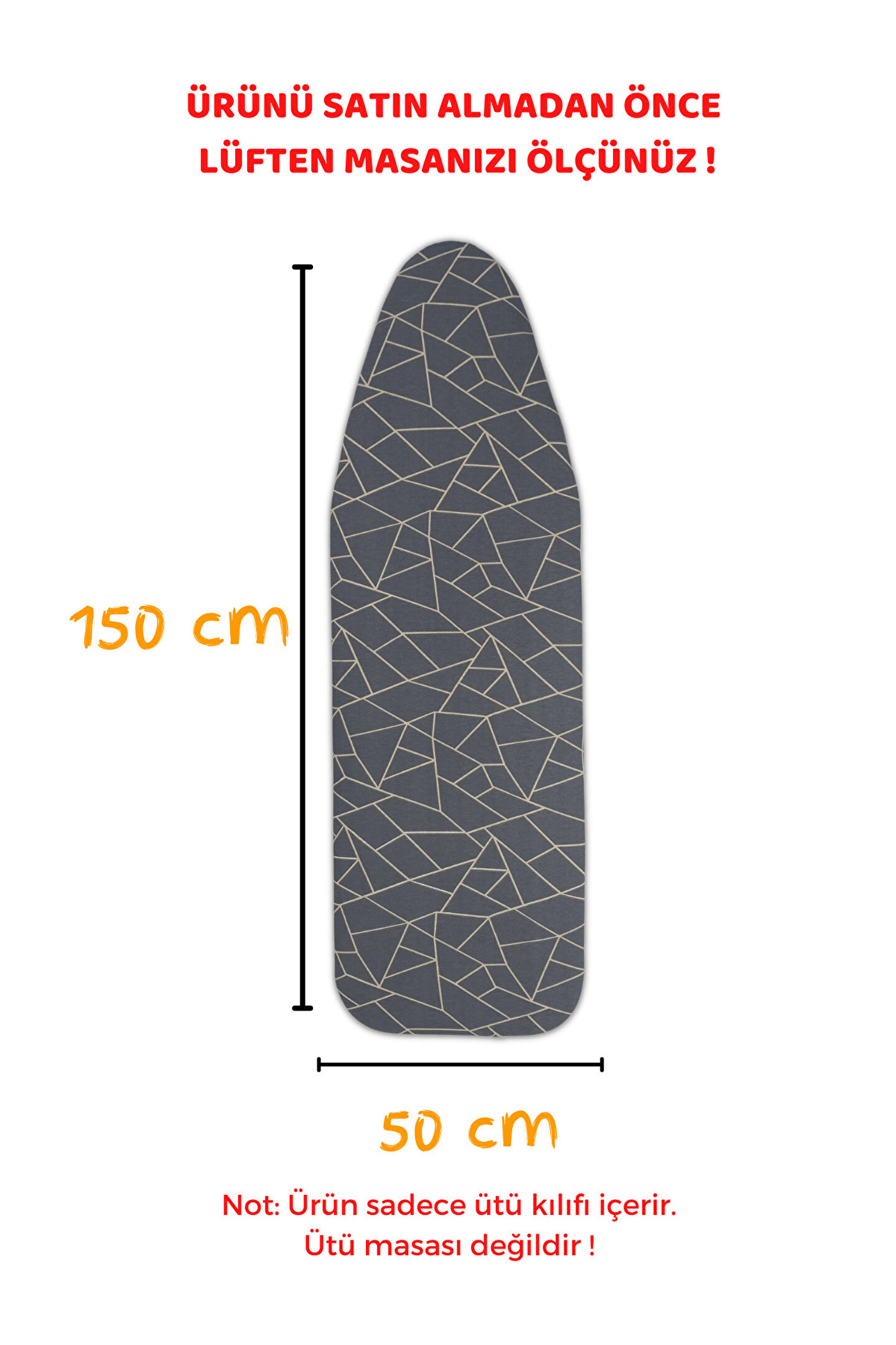 4 Katmanlı Premium Ütü Masası Kılıfı Ölçü: 50x150 cm (38-43 cm x 135-143 cm masalara uyumludur) Malzeme: %100 Pamuk Kumaş, Silikon Kaplama, 4 mm Sünger ve Polyester Keçe Isı Dayanımı: 230°C’ye kadar yüksek ısıya dayanıklıdır Yıkama: 30°C’de makinede veya elde yıkanabilir Üretim: %100 Yerli & Milli Ürün Özellikleri 4 Katmanlı Yapı: 1. Katman (Silikon Kaplama): Yanık ve leke izlerini engeller.; 2. Katman (Pamuk Kumaş): Doğal, sağlıklı ve ütüleme için özel dokuma.; 3. Katman (Sünger): 4 mm kalınlık, konforlu ütüleme.; 4. Katman (Keçe): Yüksek kaliteli hammadde, maksimum buhar geçirgenliği.; Laminasyon Tekniği: Katmanlar birbirine yapıştırılmıştır; kayma yapmaz, buharı maksimum geçirir.; Enerji Tasarrufu: Isıyı homojen yayarak ütüleme süresini kısaltır, elektrik tüketimini azaltır.; Masaya tam oturur, kayma yapmaz.; Sağlıklı & Güvenli: Kimyasal ve kanserojen madde içermez, çevre dostudur.; Premium Kalite: Kalın, yüksek dolgulu yapısı ile pürüzsüz ve hızlı ütü deneyimi sağlar.