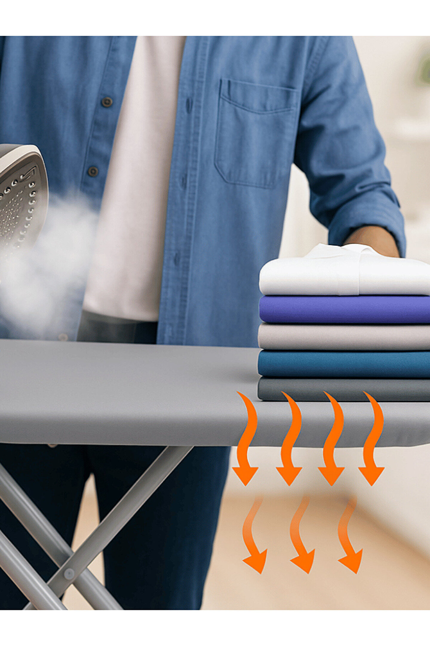 4 Katmanlı Premium Ütü Masası Kılıfı Ölçü: 50x150 cm (38-43 cm x 135-143 cm masalara uyumludur) Malzeme: %100 Pamuk Kumaş, Silikon Kaplama, 4 mm Sünger ve Polyester Keçe Isı Dayanımı: 230°C’ye kadar yüksek ısıya dayanıklıdır Yıkama: 30°C’de makinede veya elde yıkanabilir Üretim: %100 Yerli & Milli Ürün Özellikleri 4 Katmanlı Yapı: 1. Katman (Silikon Kaplama): Yanık ve leke izlerini engeller.; 2. Katman (Pamuk Kumaş): Doğal, sağlıklı ve ütüleme için özel dokuma.; 3. Katman (Sünger): 4 mm kalınlık, konforlu ütüleme.; 4. Katman (Keçe): Yüksek kaliteli hammadde, maksimum buhar geçirgenliği.; Laminasyon Tekniği: Katmanlar birbirine yapıştırılmıştır; kayma yapmaz, buharı maksimum geçirir.; Enerji Tasarrufu: Isıyı homojen yayarak ütüleme süresini kısaltır, elektrik tüketimini azaltır.; Ayarlanabilir Lastik Mekanizma: 15 tel lastik ve stoper sayesinde masaya tam oturur, kayma yapmaz.; Sağlıklı & Güvenli: Kimyasal ve kanserojen madde içermez, çevre dostudur.; Premium Kalite: Kalın, yüksek dolgulu yapısı ile pürüzsüz ve hızlı ütü deneyimi sağlar.